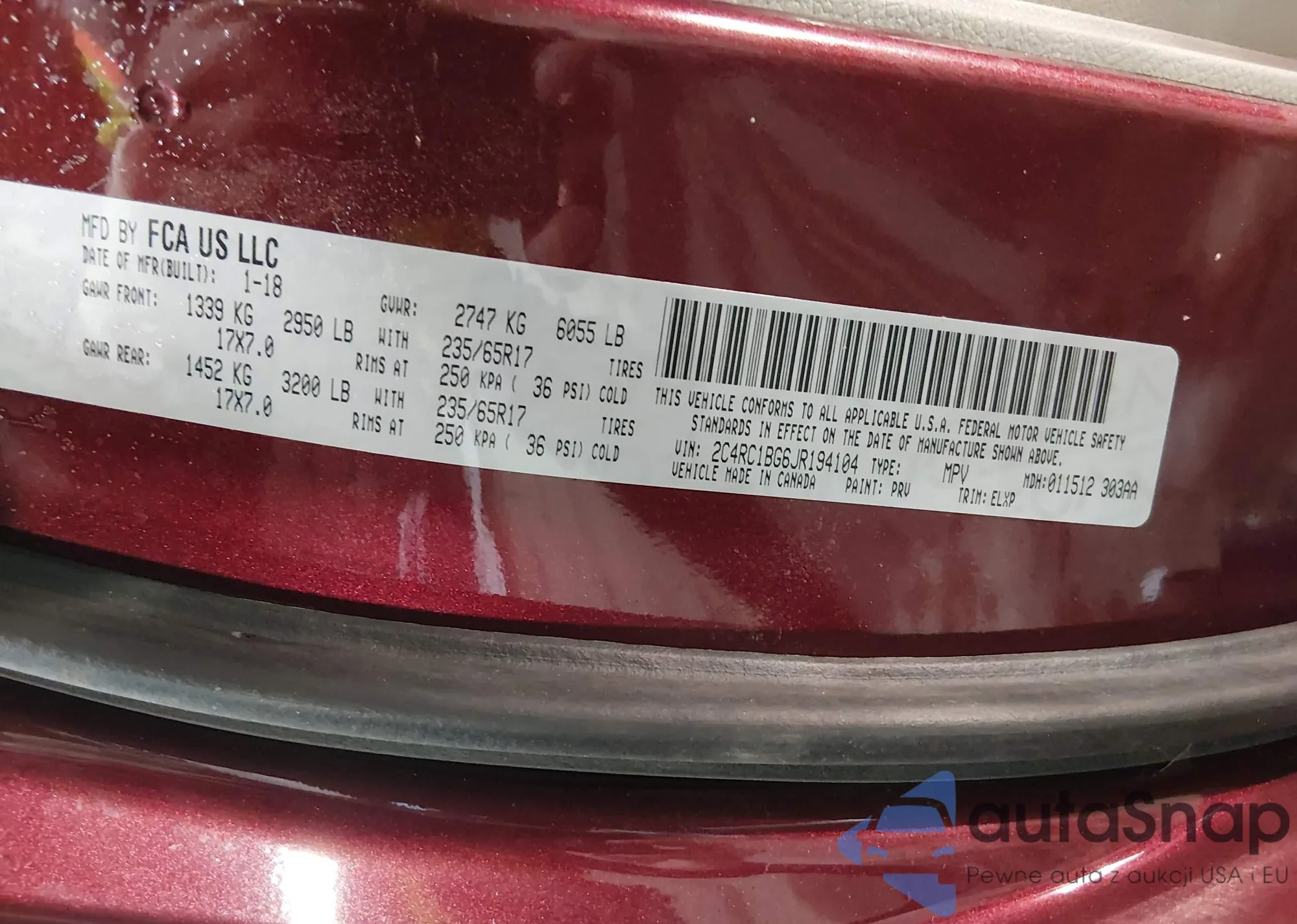 • VIN 2C4RC1BG6JR194104