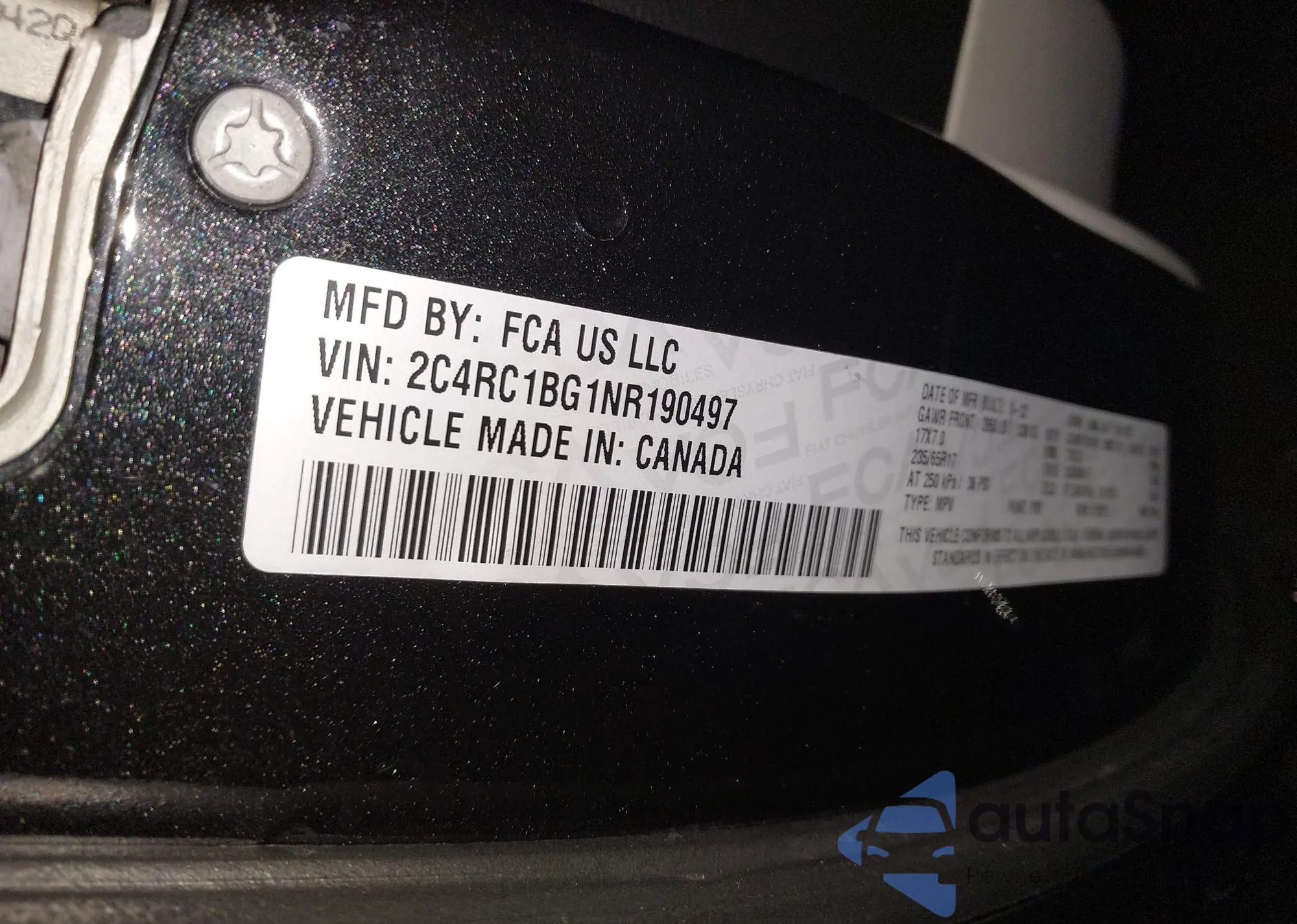 • VIN 2C4RC1BG1NR190497
