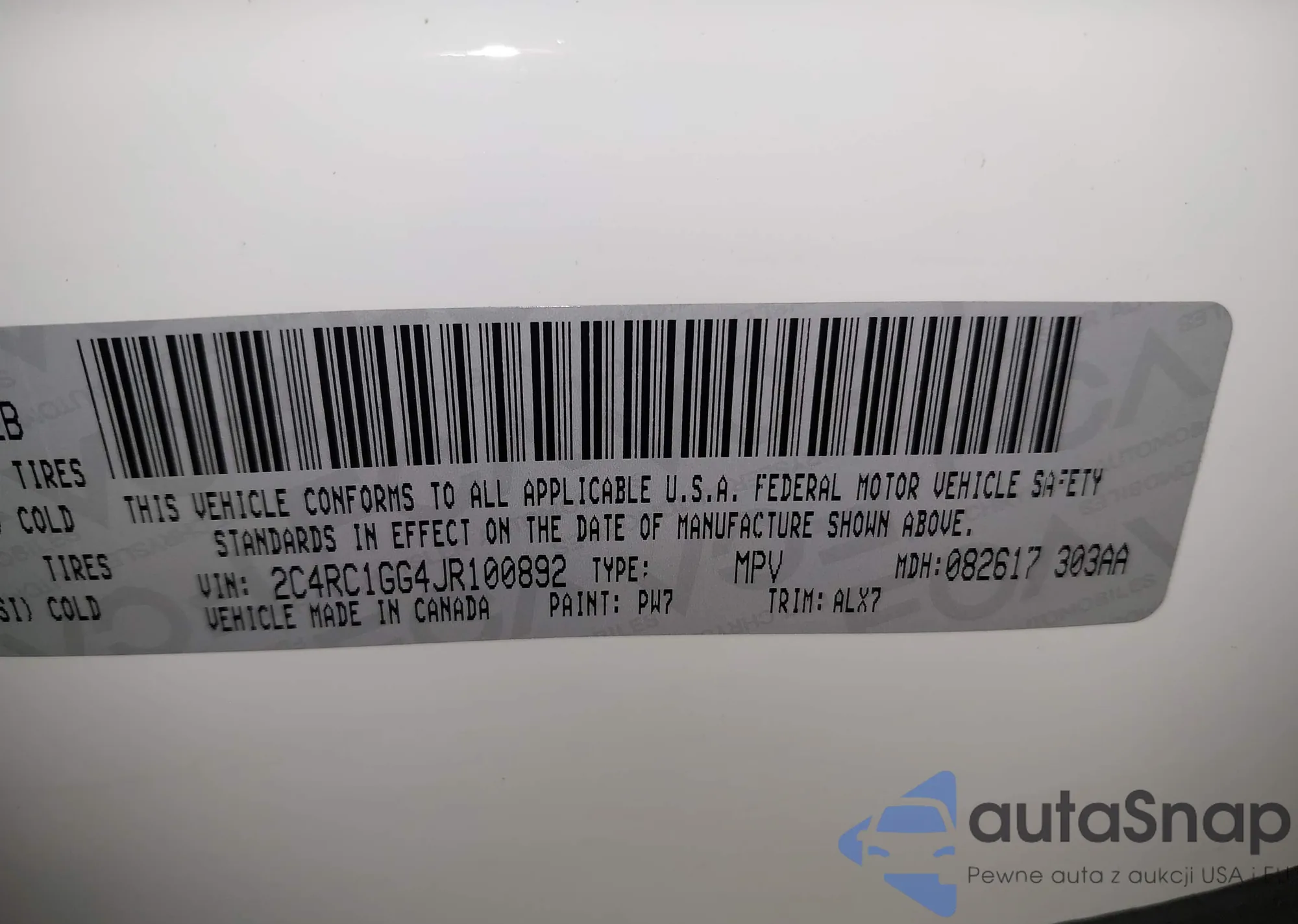 • VIN 2C4RC1GG4JR100892
