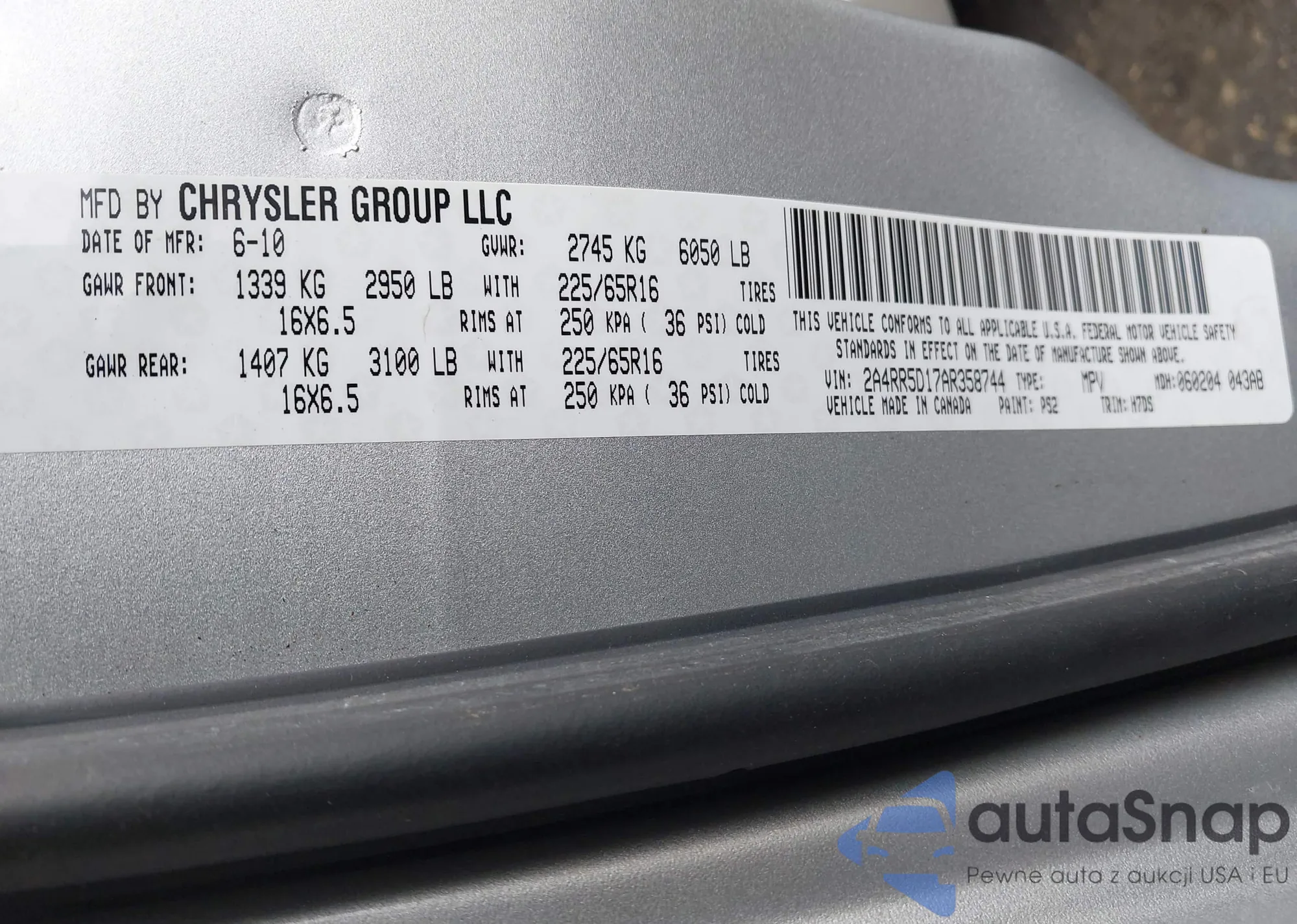 • VIN 2A4RR5D17AR358744