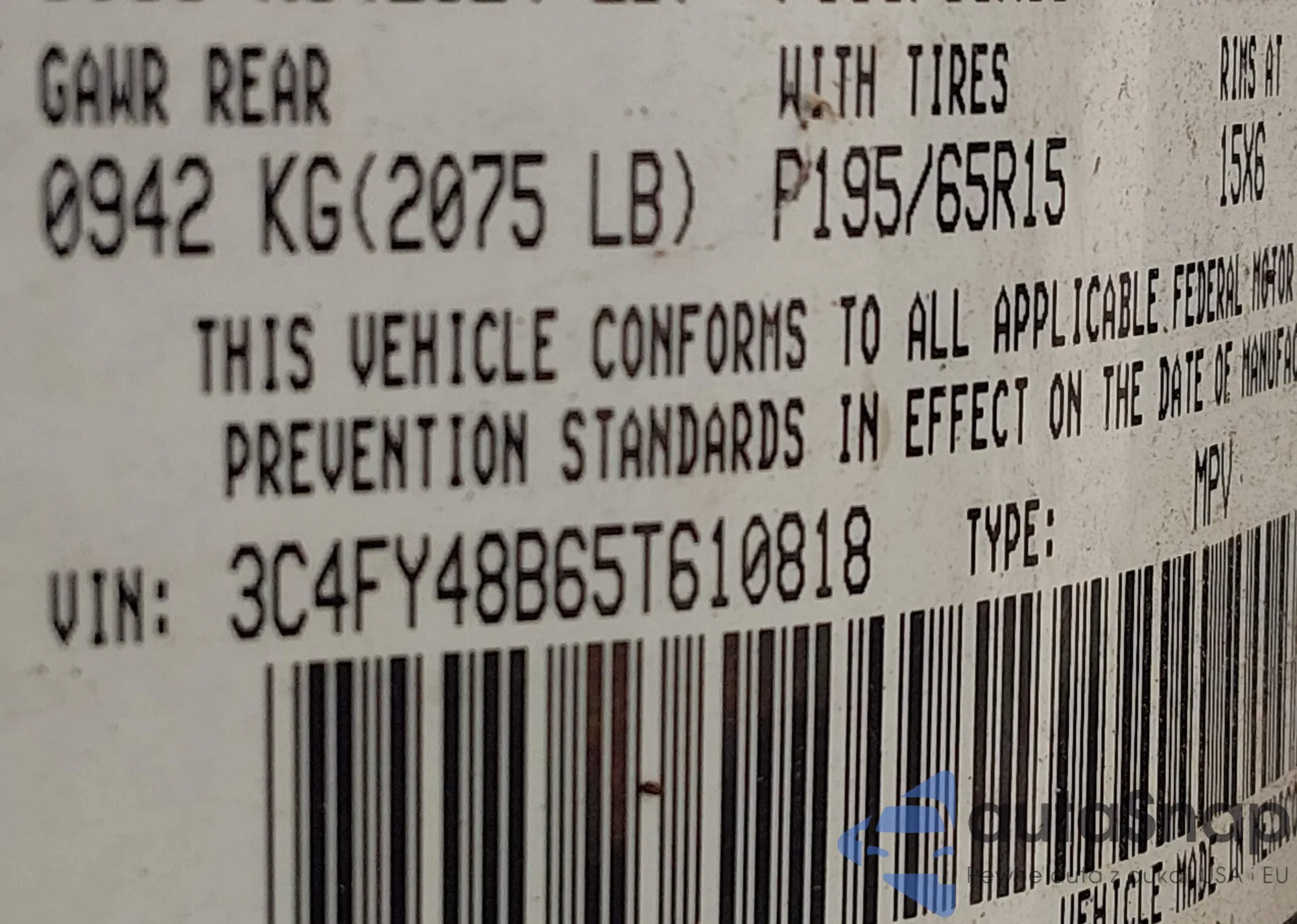 LOT: 44258846 VIN: 3C4FY48B65T610818