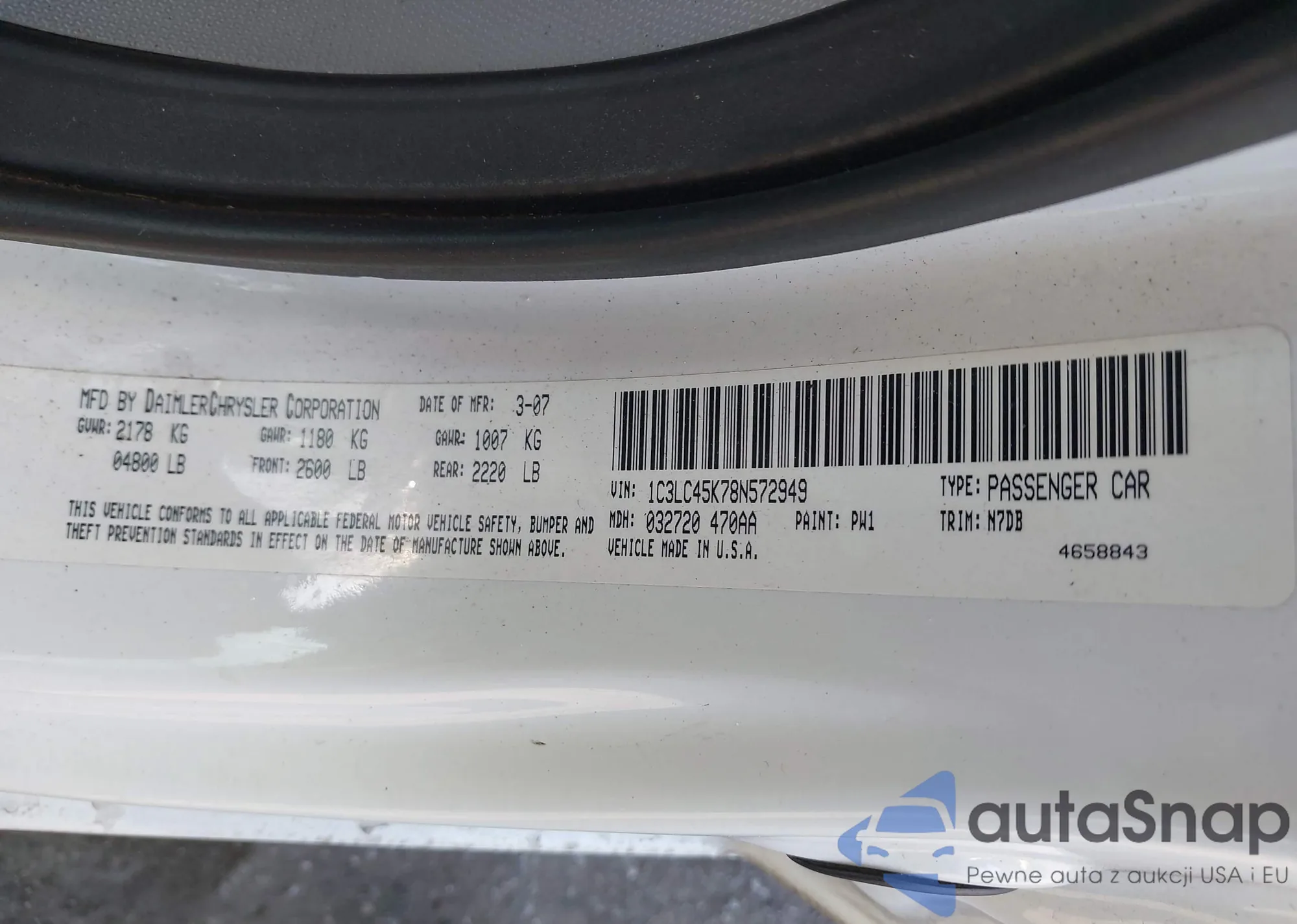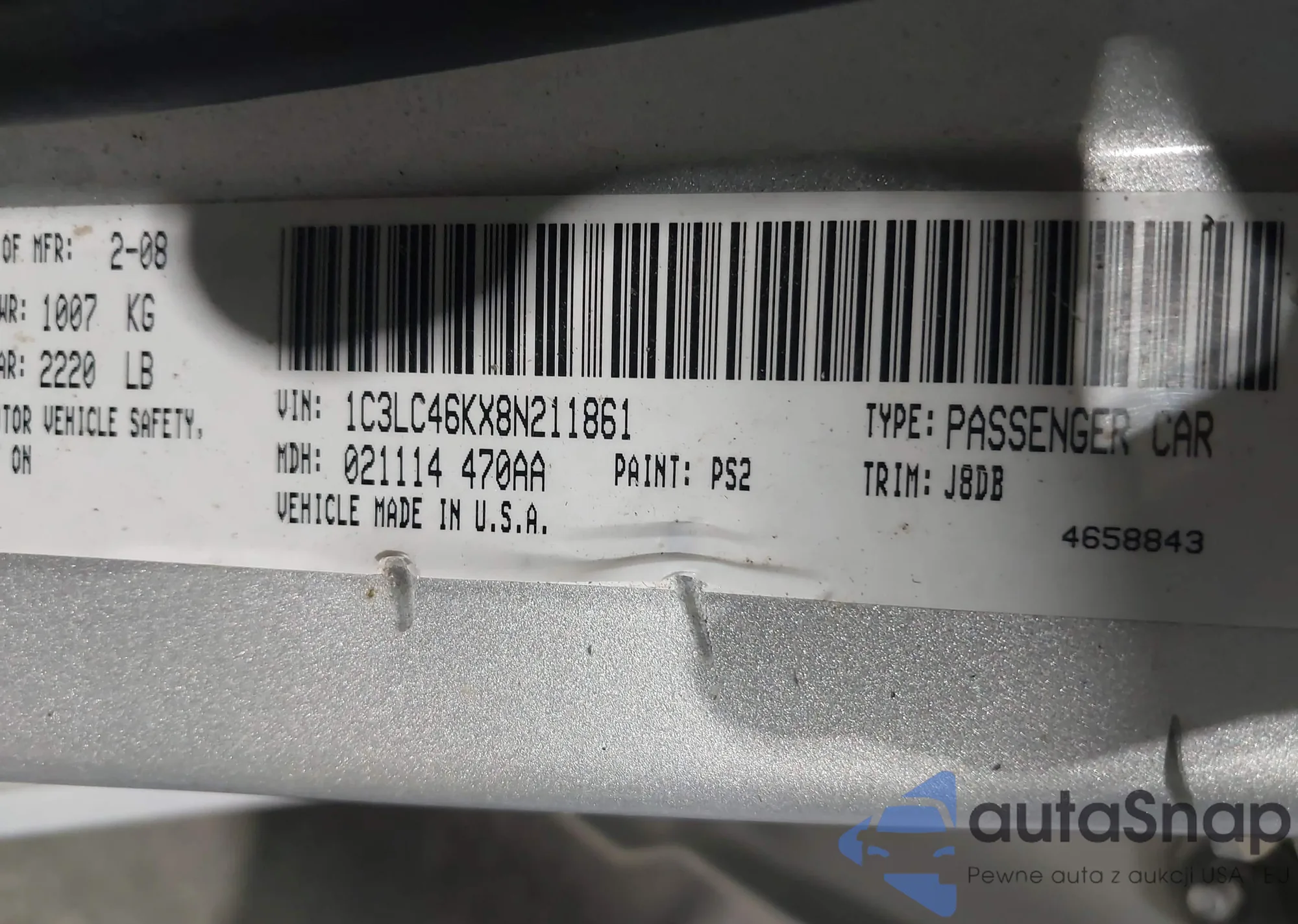LOT: 43998892 VIN: 1C3LC45K78N572949