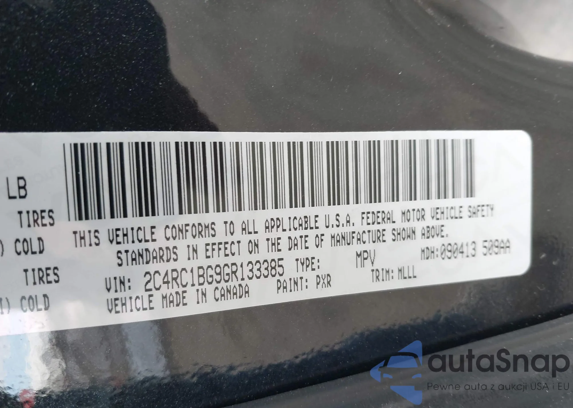 • VIN 2C4RC1BG9GR133385