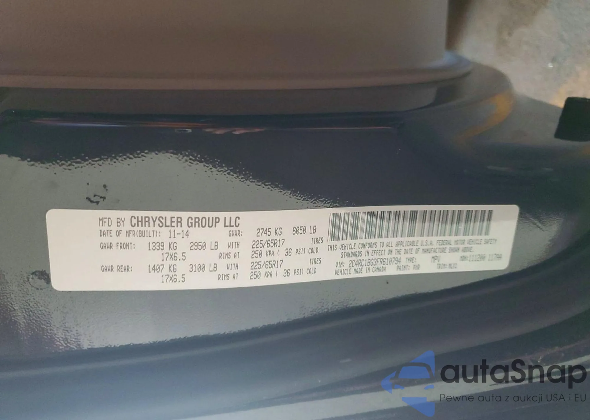 • VIN 2C4RC1BG3FR610794