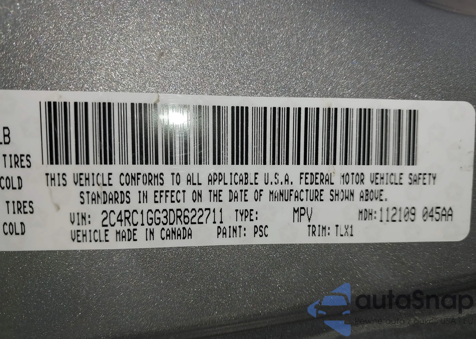 • VIN 2C4RC1GG3DR622711