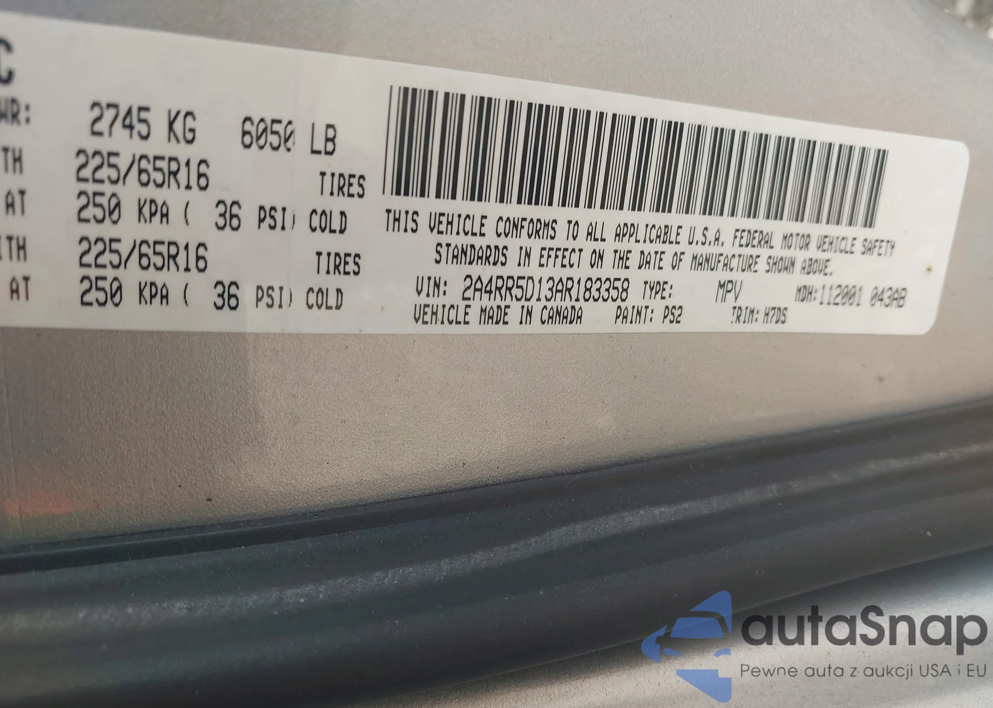 • VIN 2A4RR5D13AR183358