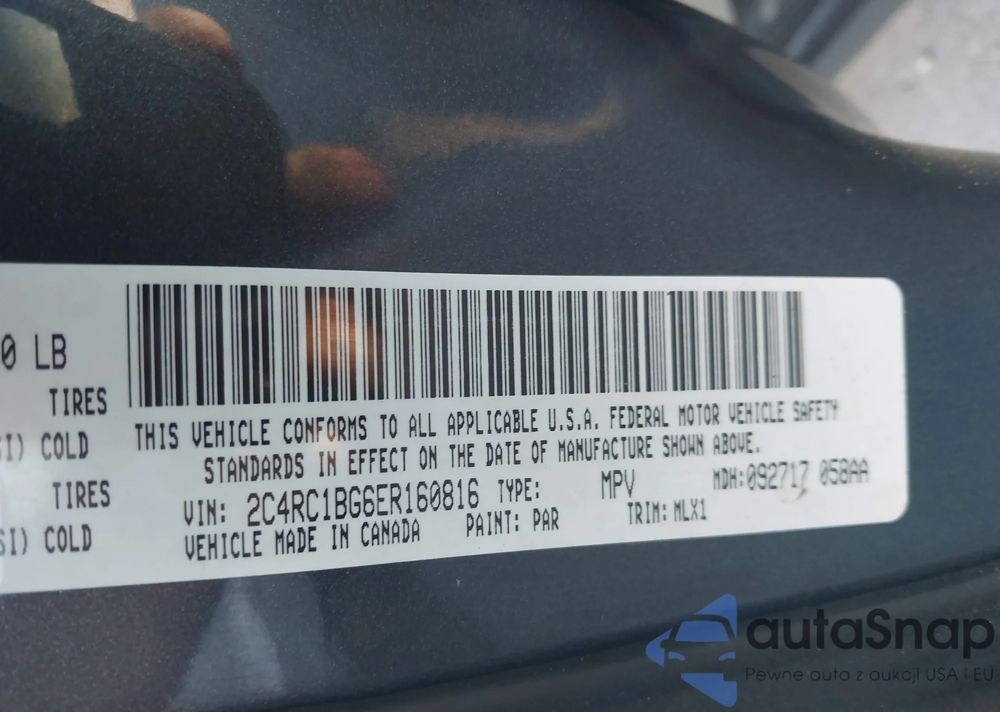• VIN 2C4RC1BG6ER160816