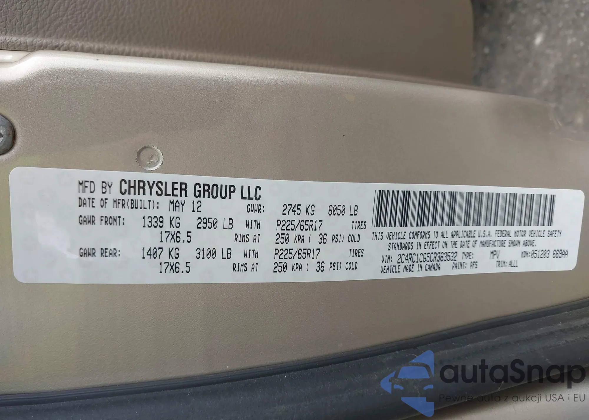 • VIN 2C4RC1CG5CR363532