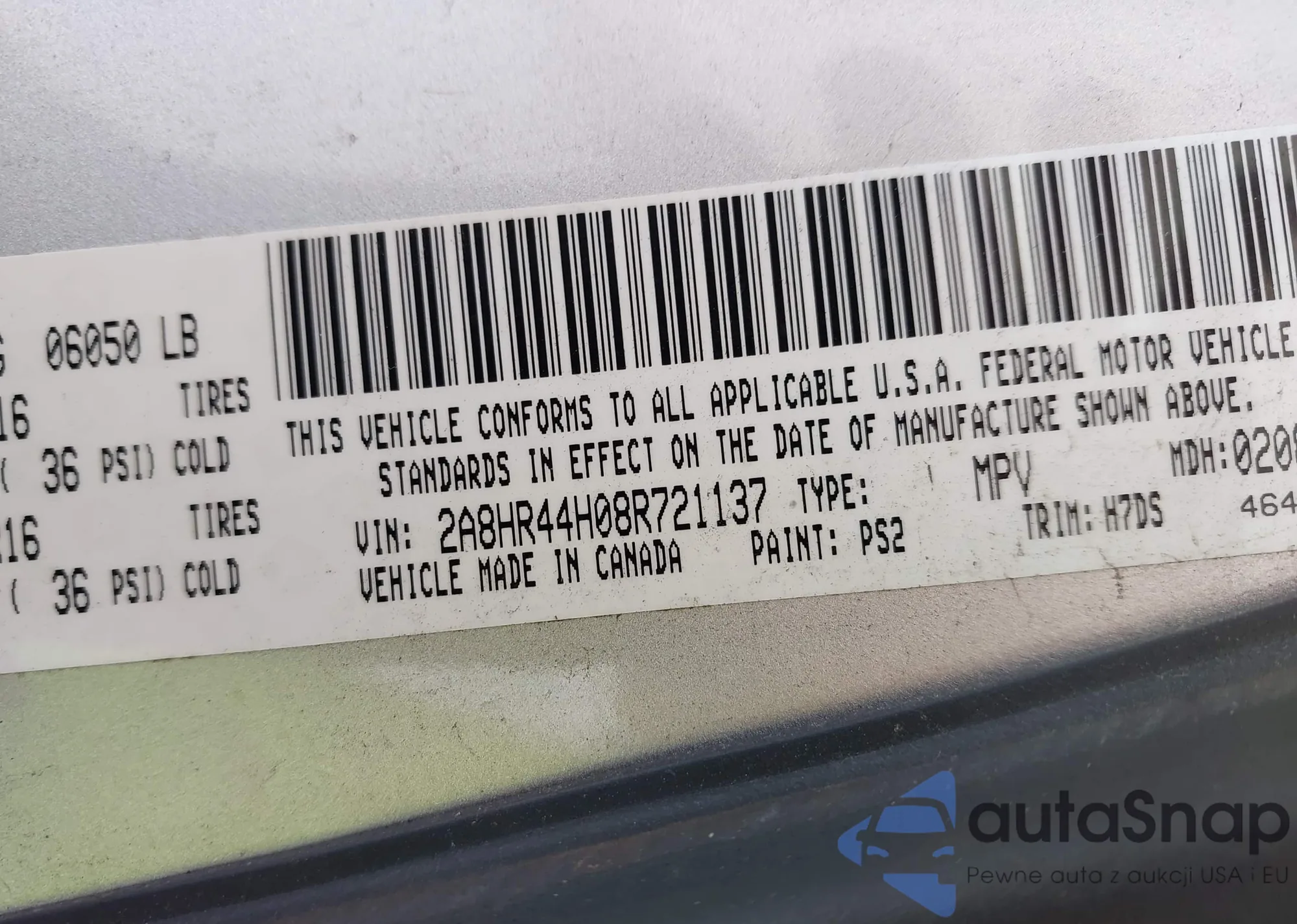 LOT: 43310565 VIN: 2A8HR44H08R721137