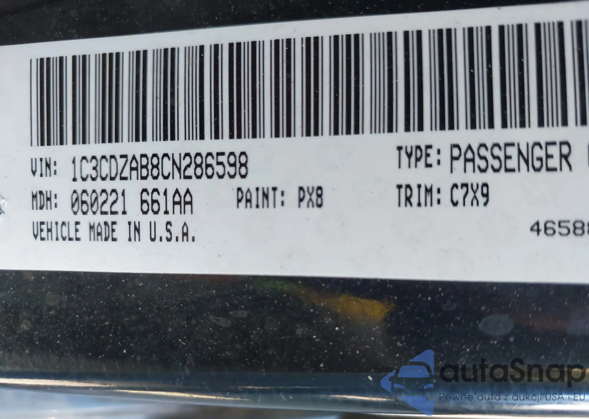 LOT: 85117045 VIN: 1C3CDZAB8CN270093