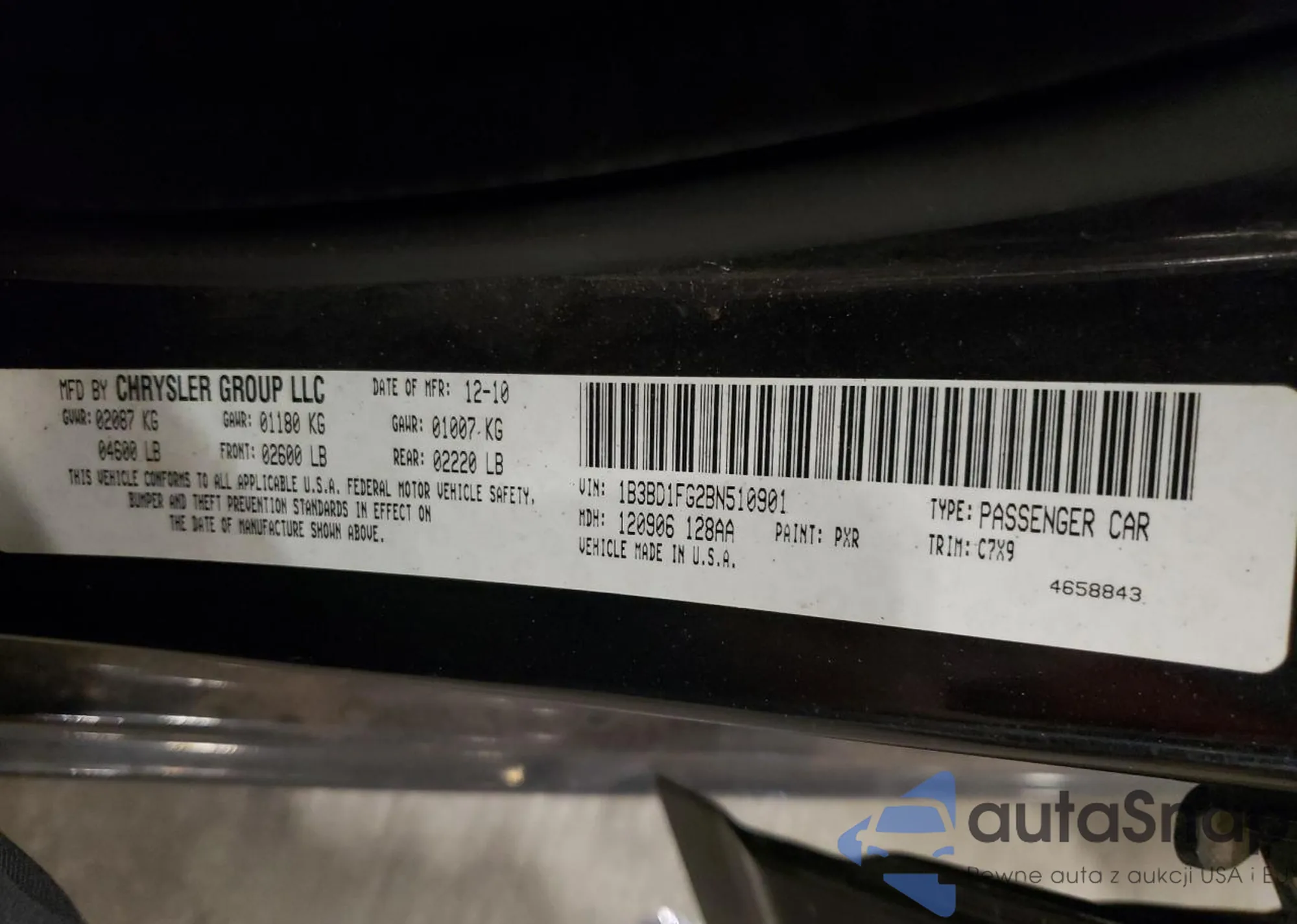 • VIN 1B3BD1FG2BN510901