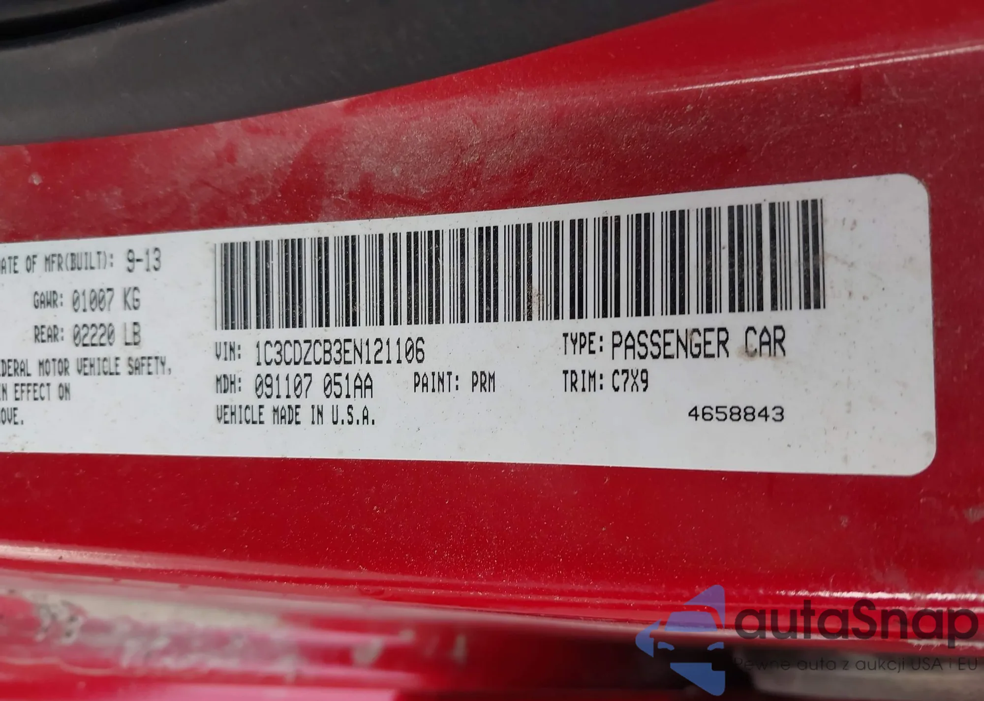 • VIN 1C3CDZCB3EN121106