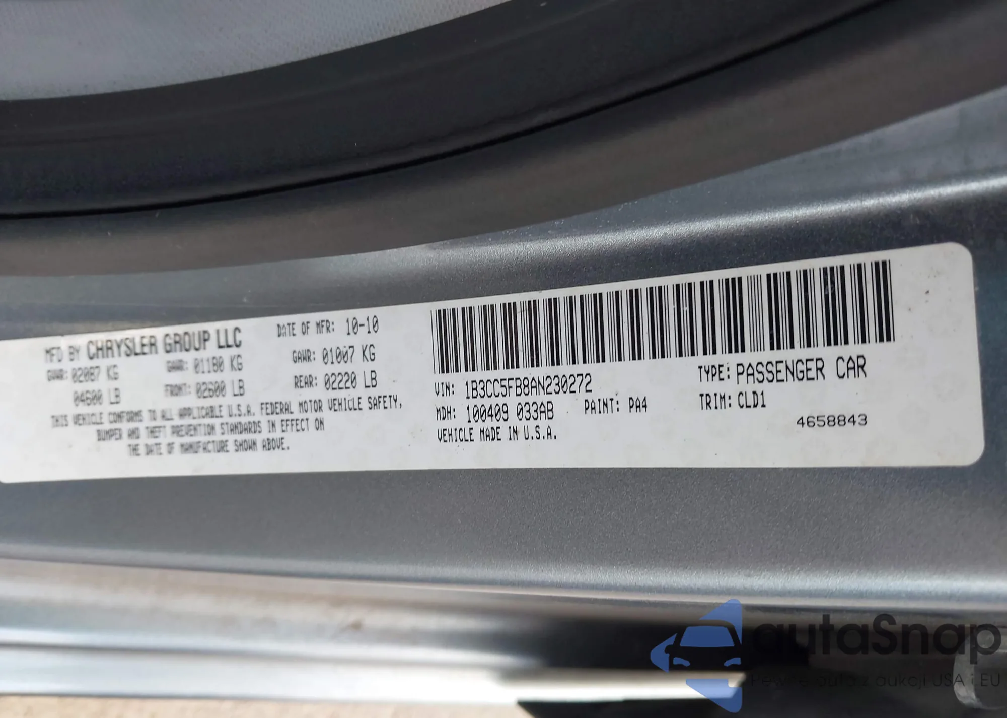 • VIN 1B3CC5FB8AN230272