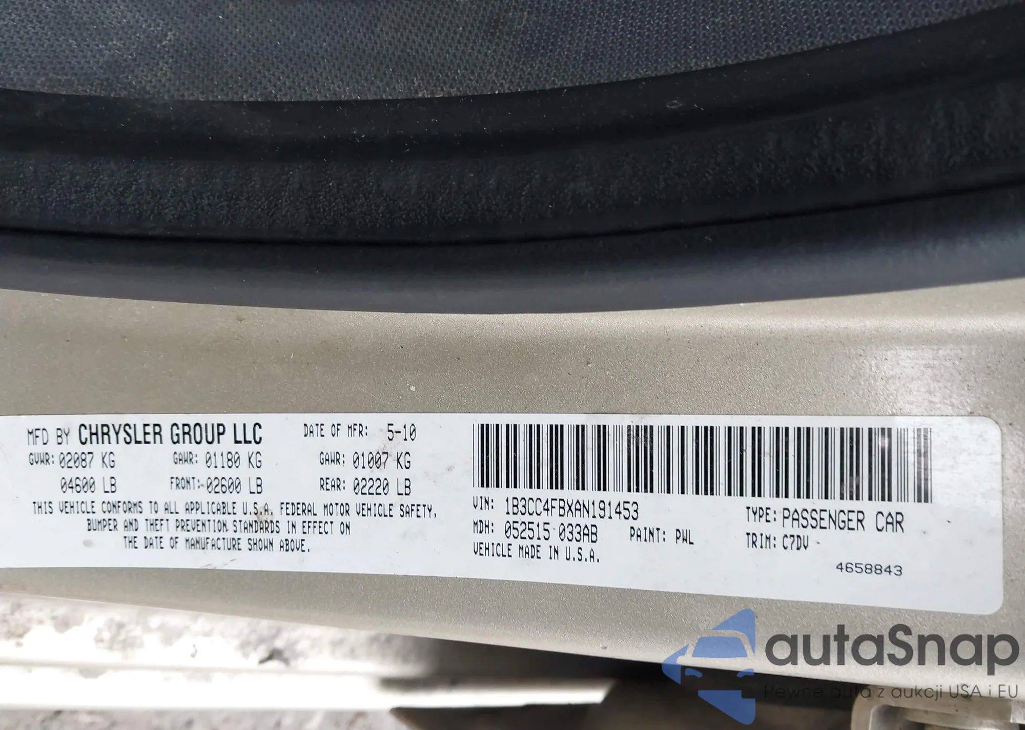 • VIN 1B3CC4FBXAN191453
