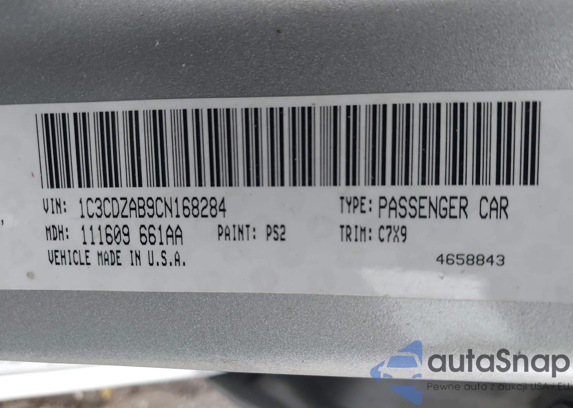 LOT: 44017043 VIN: 1C3CDZAB9CN168284