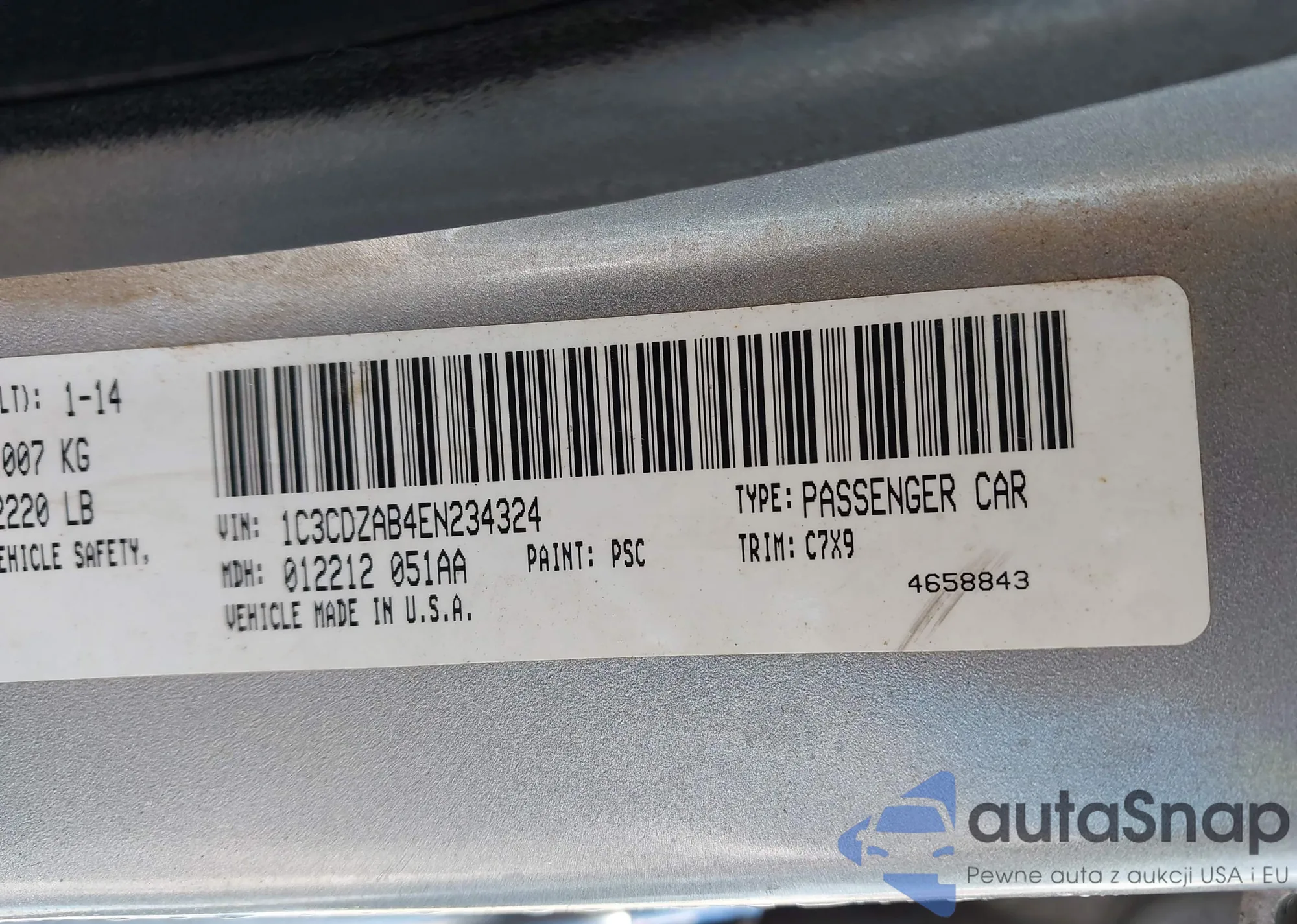 LOT: 43868513 VIN: 1C3CDZAB4EN234324