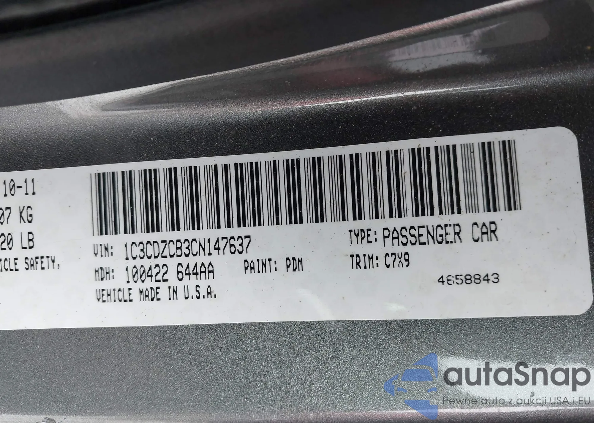 • VIN 1C3CDZCB3CN147637