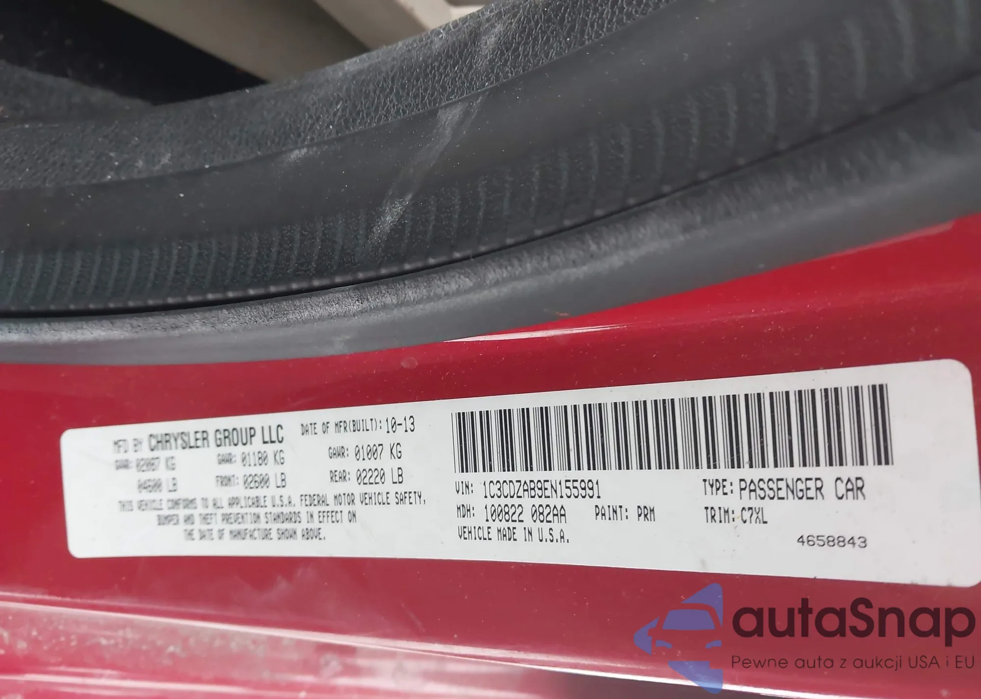 LOT: 44290000 VIN: 1C3CDZAB9EN155991