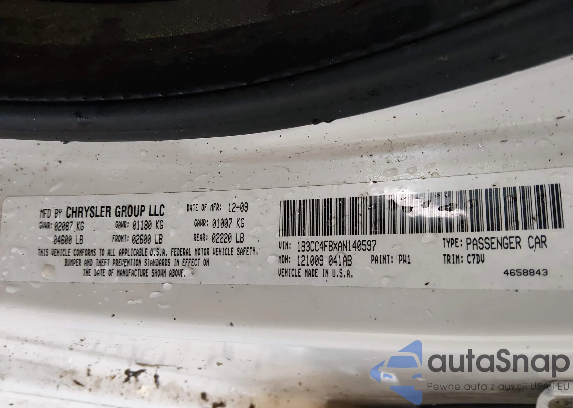 • VIN 1C3CDZBG9CN143377