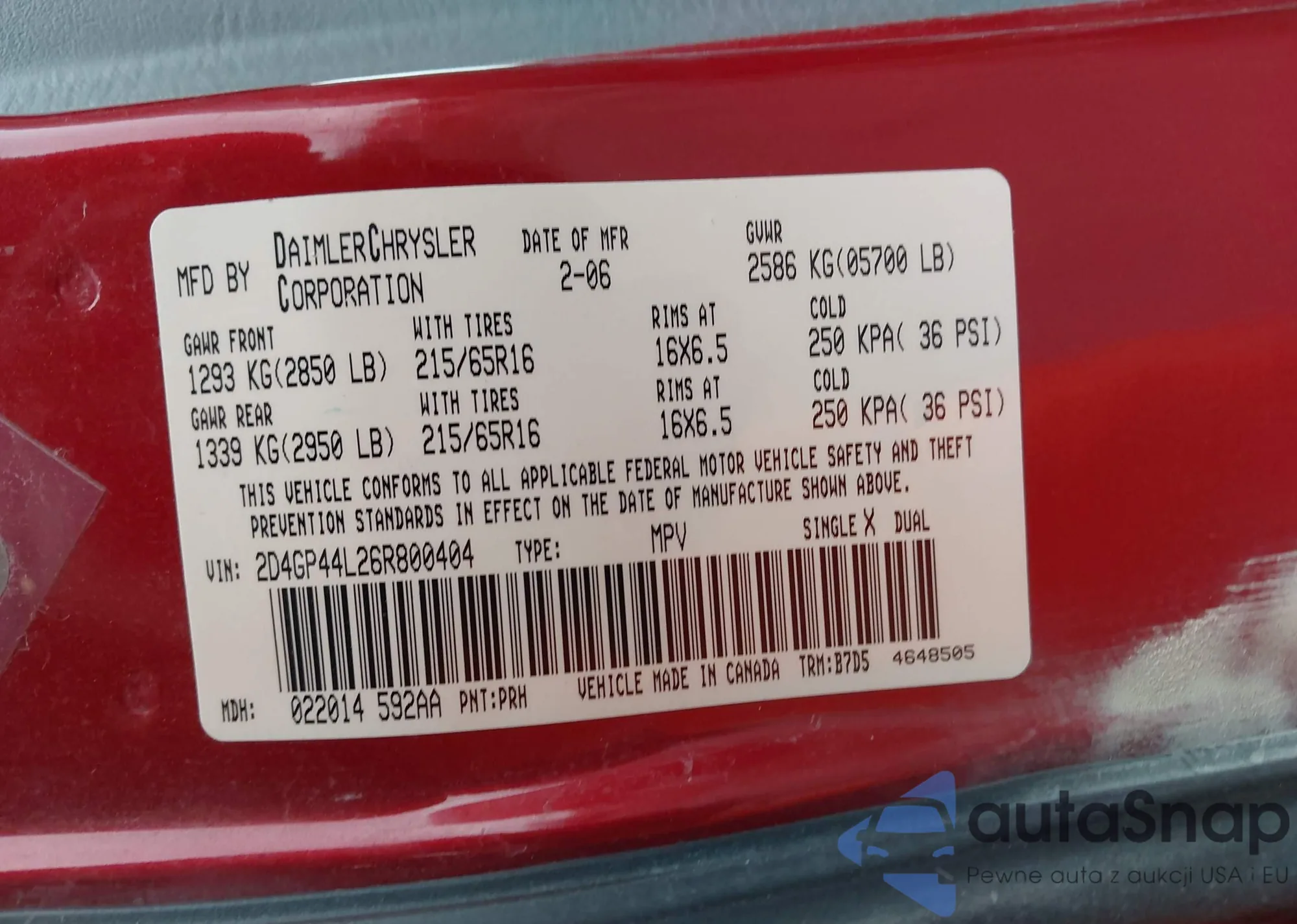 • VIN 2D4GP44L26R800404
