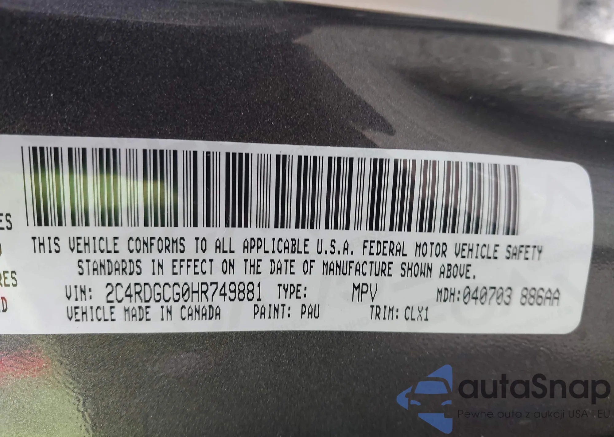 • VIN 2C4RDGCG0HR749881
