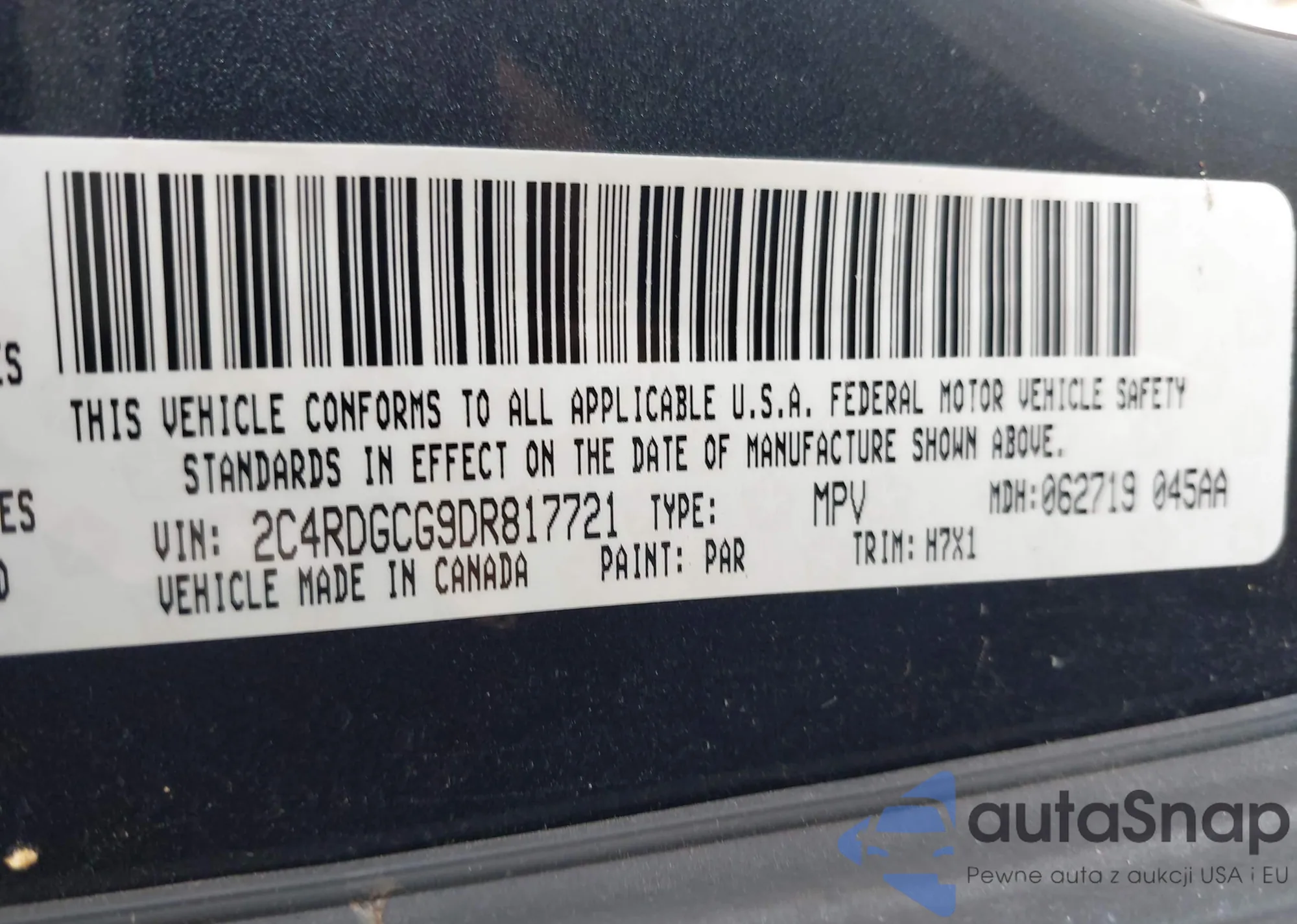 • VIN 2C4RDGCG9DR817721