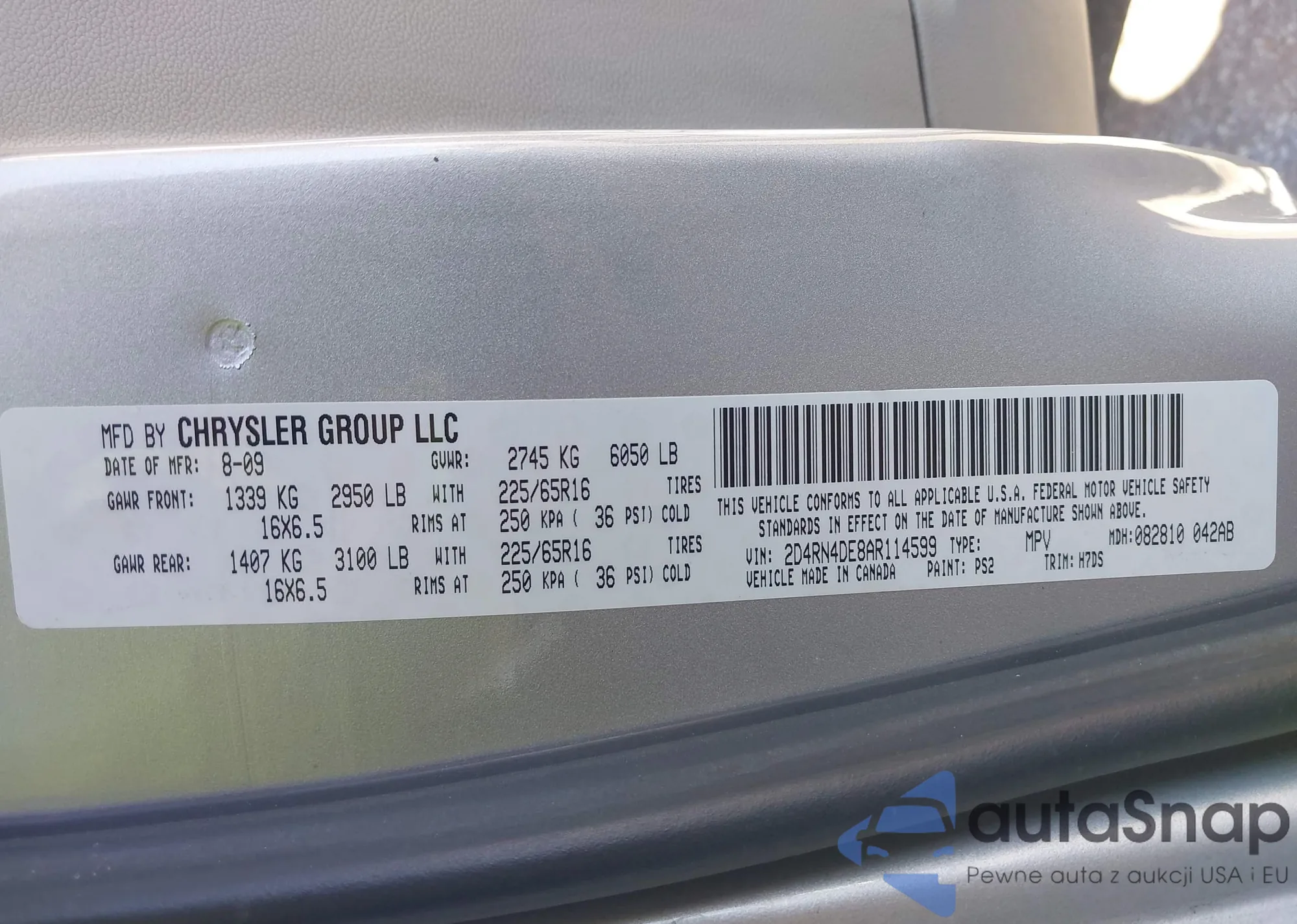 • VIN 2D4RN4DE8AR114599