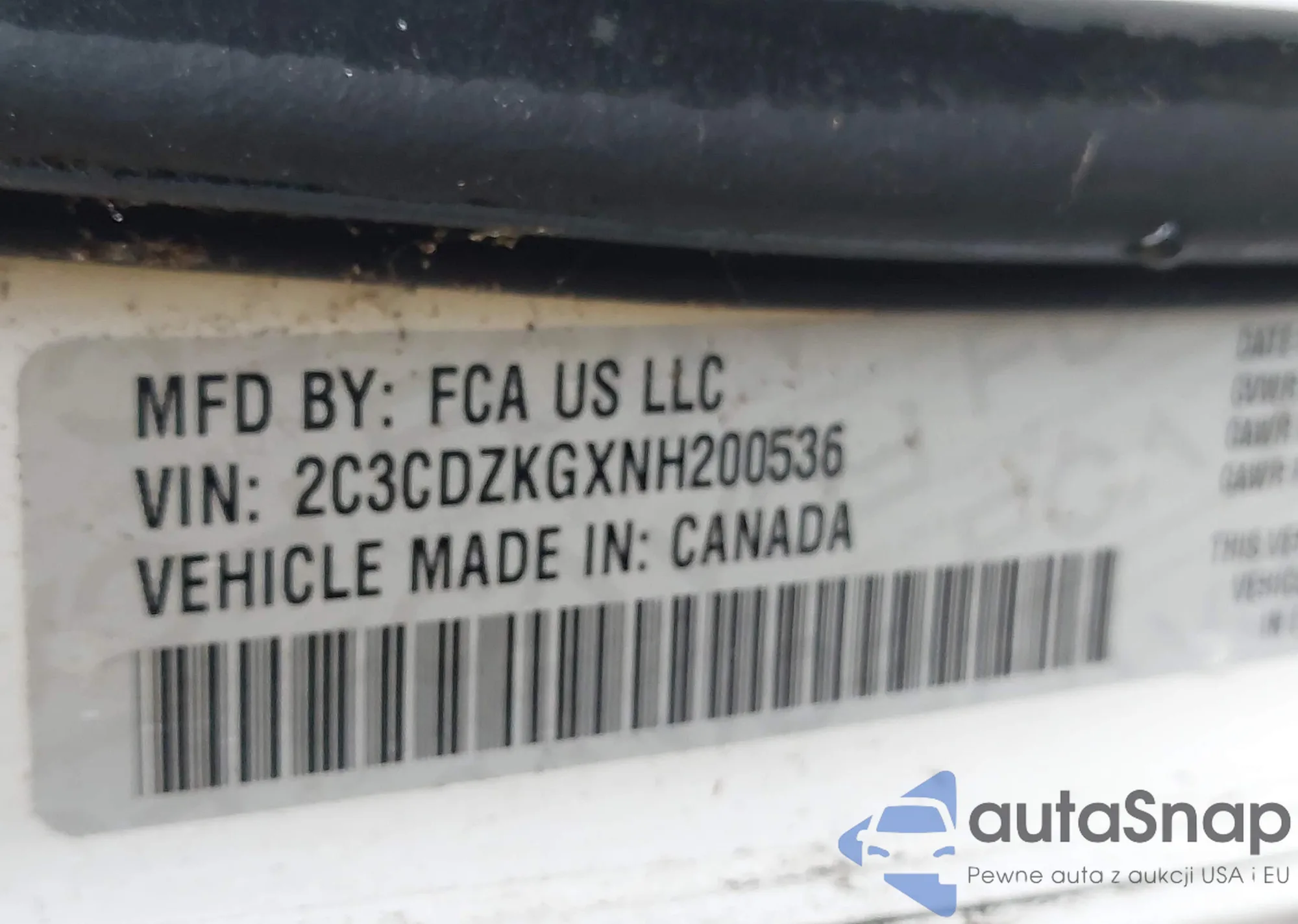 • VIN 2C3CDZKGXNH200536