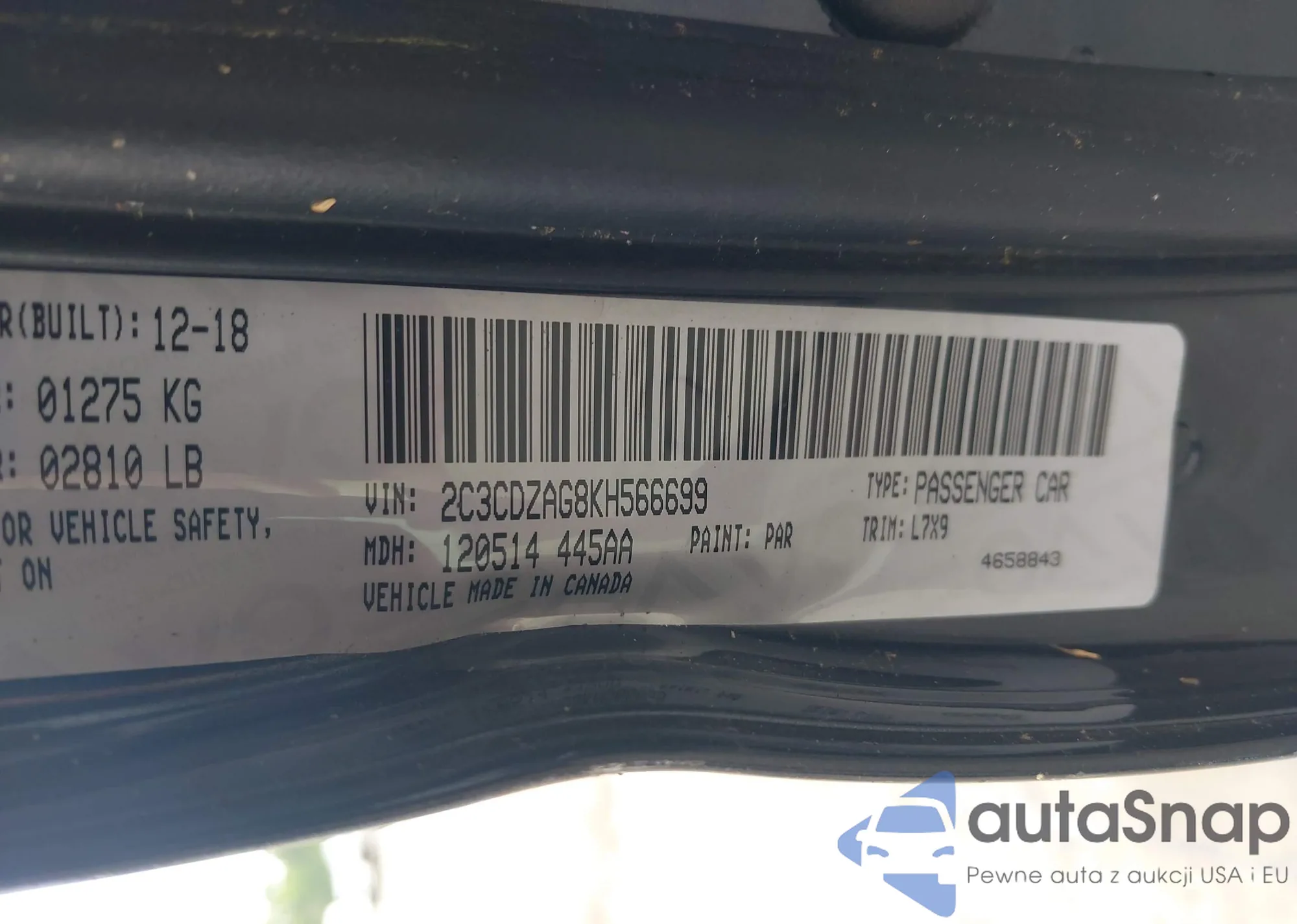 • VIN 2C3CDZAG8KH566699