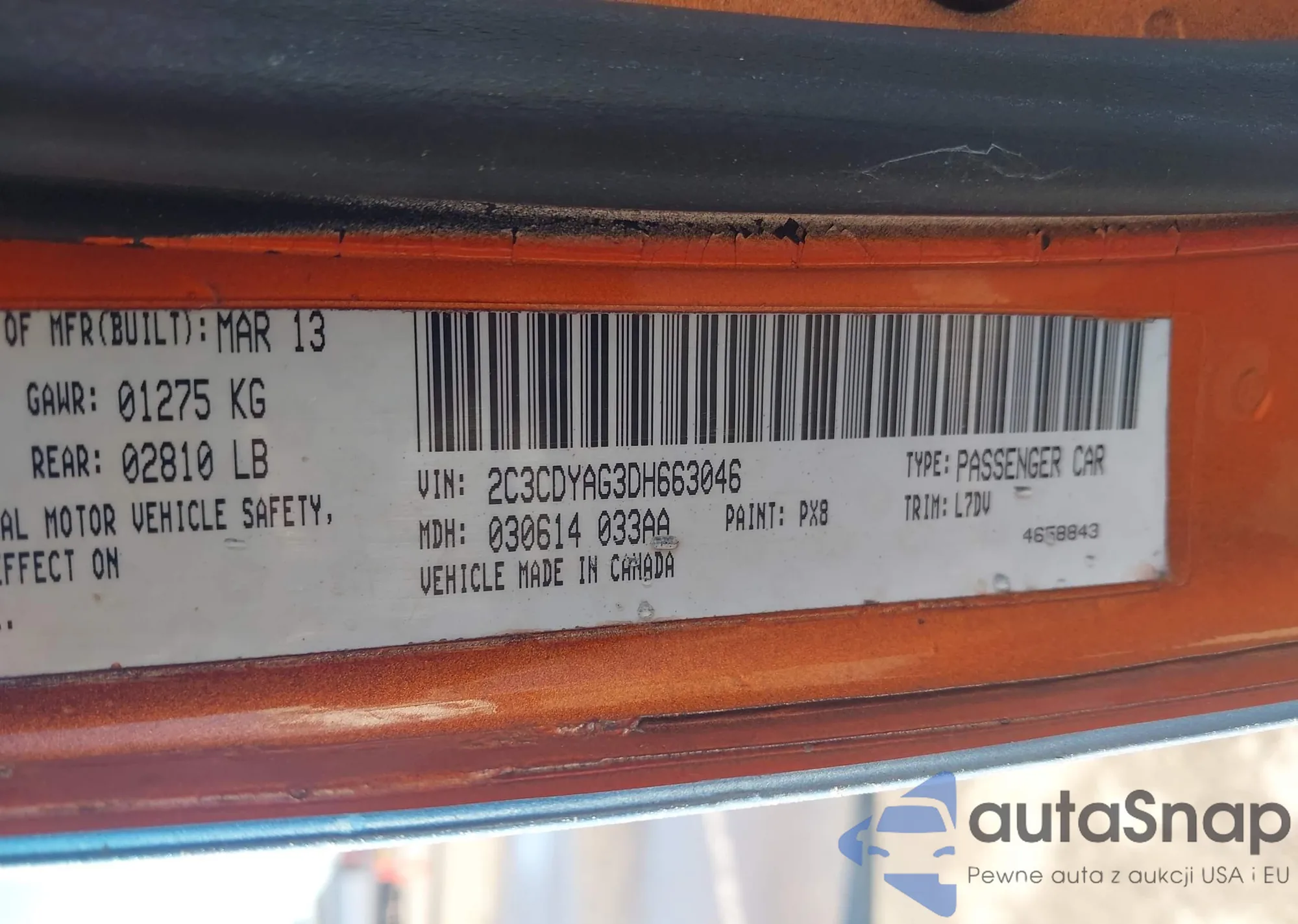 LOT: 44326666 VIN: 2C3CDYAG3DH663046