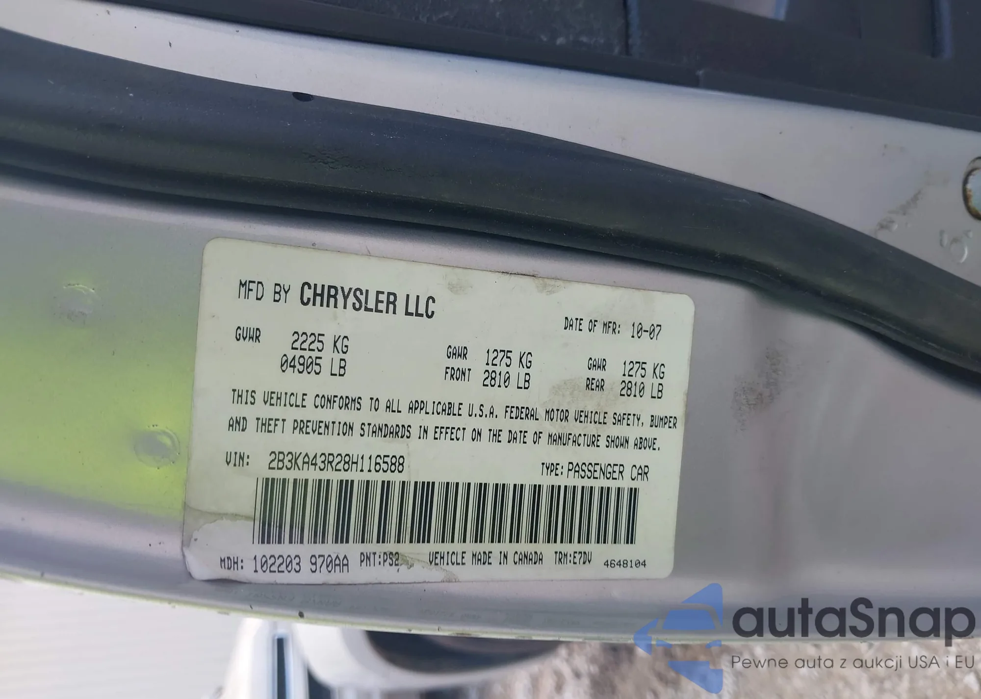 • VIN 2B3KA43R28H116588