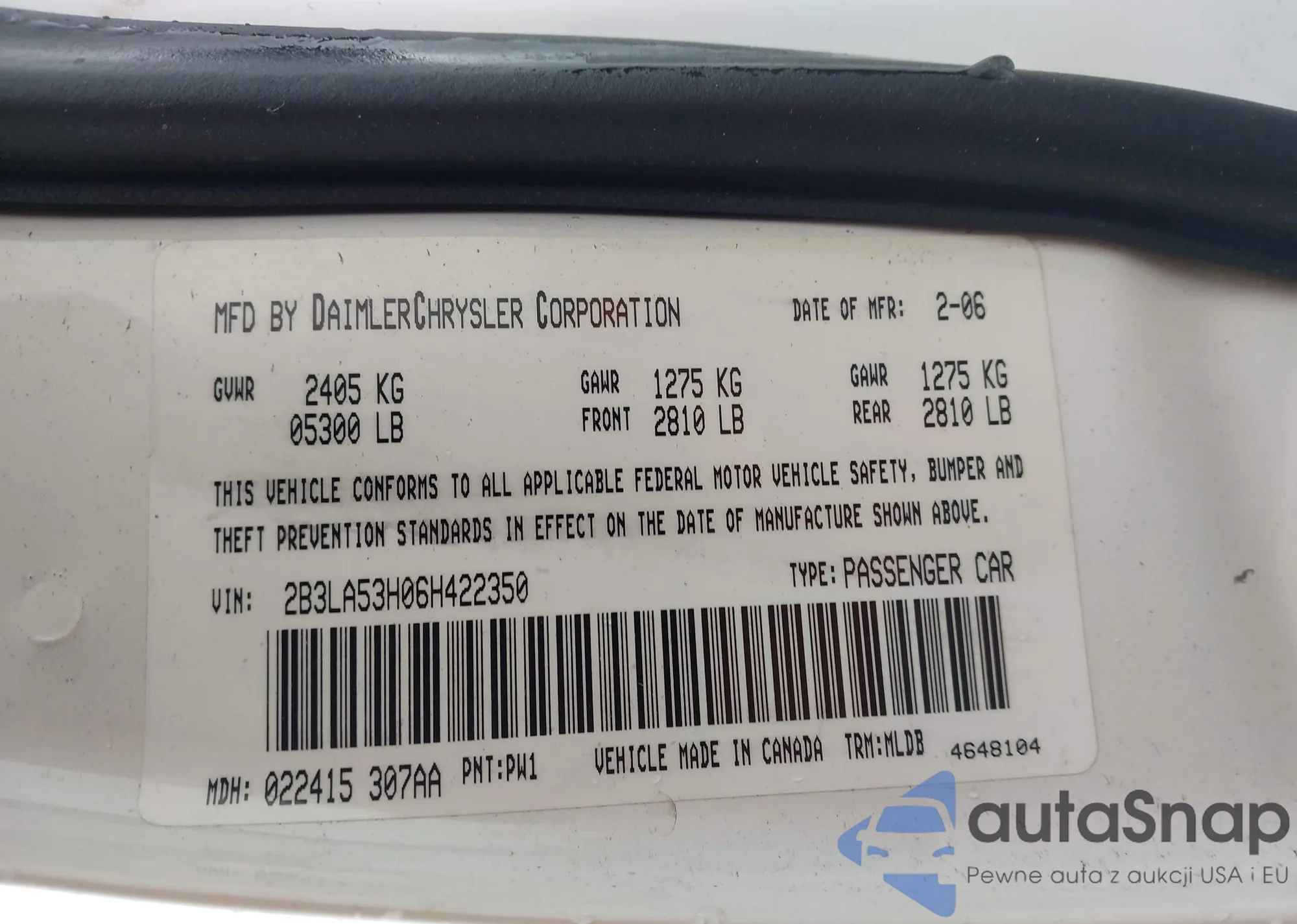 • VIN 2B3LA53H06H422350