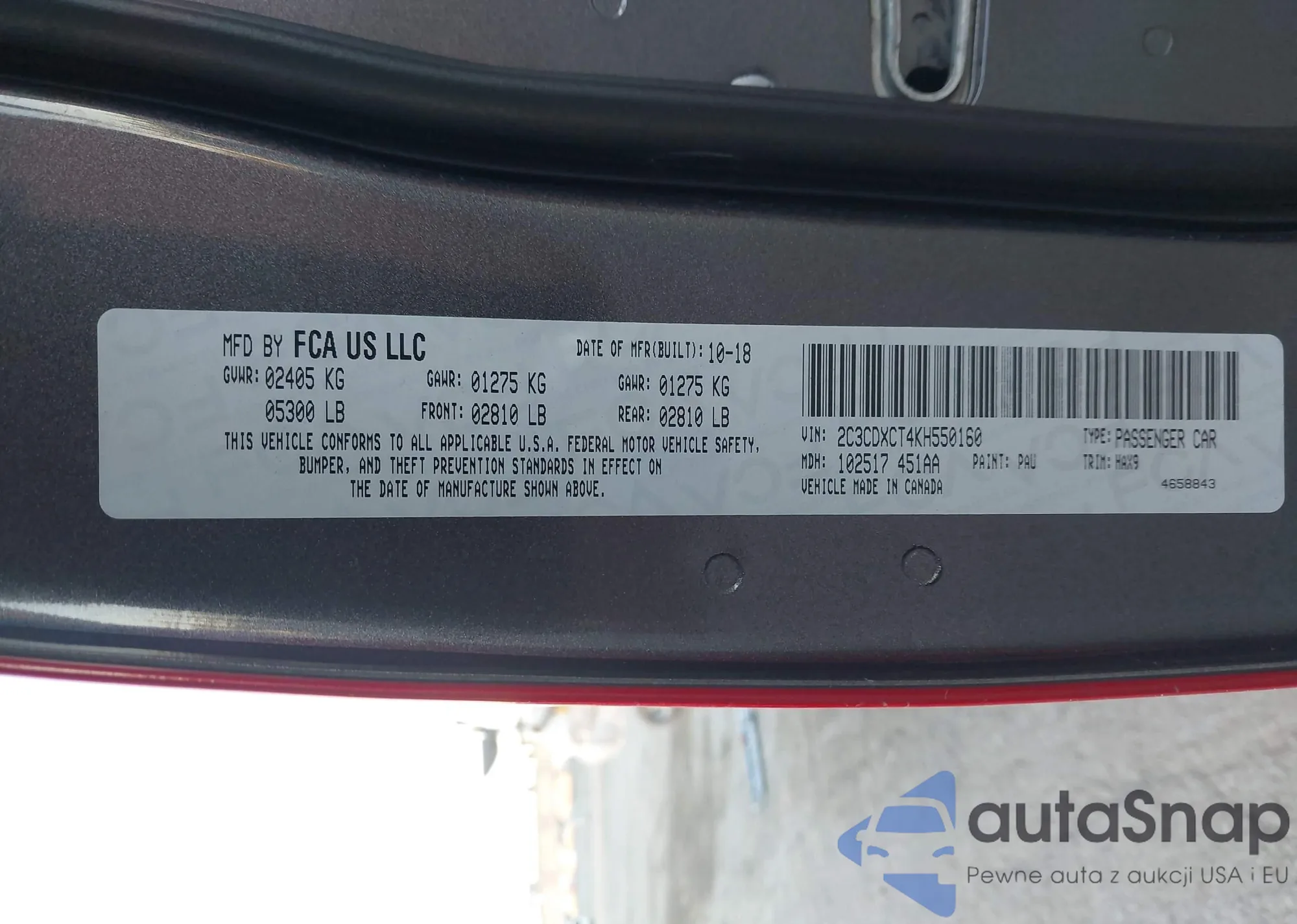 • VIN 2C3CDXCT4KH550160