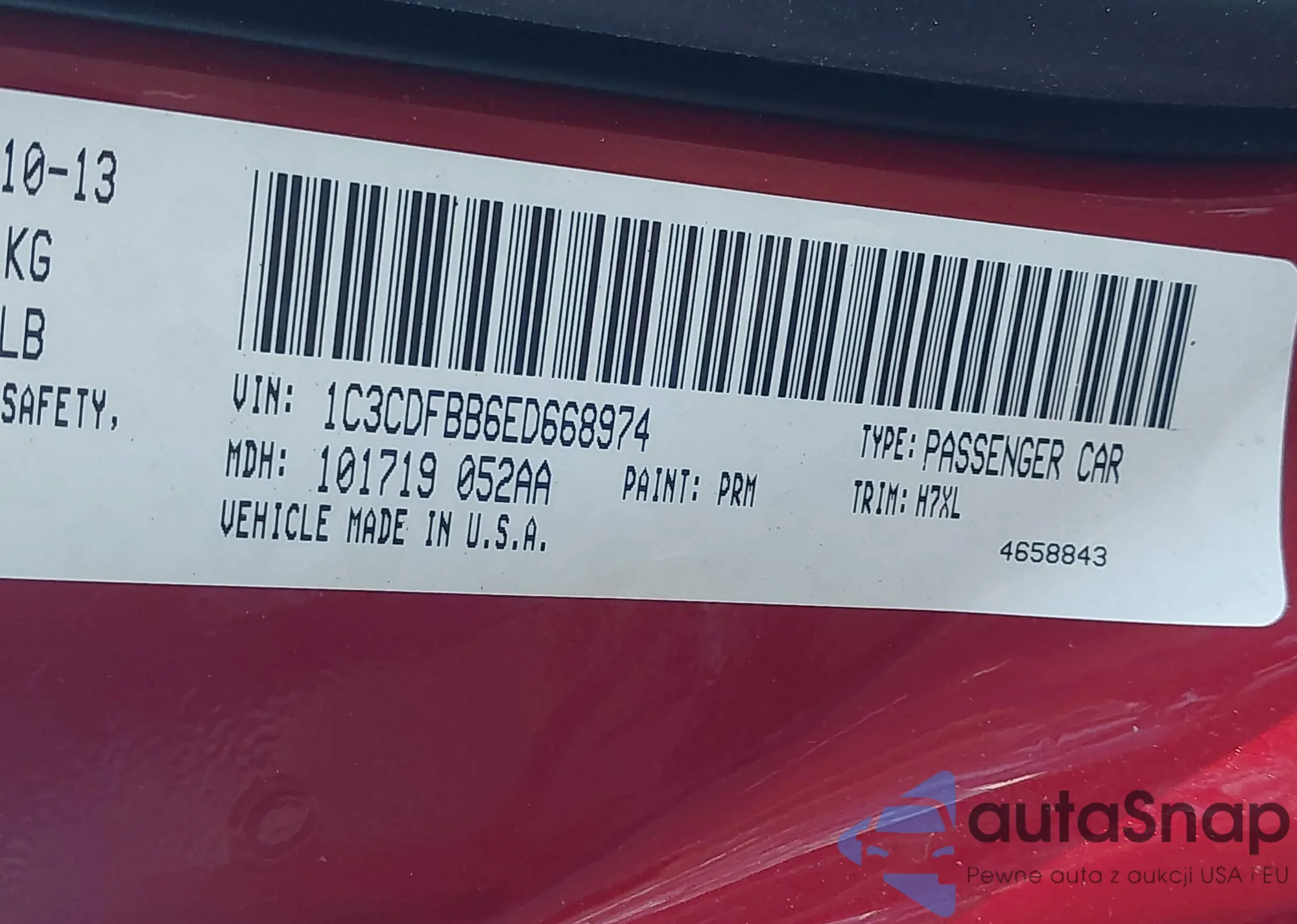 • VIN 1C3CDFBB6ED668974