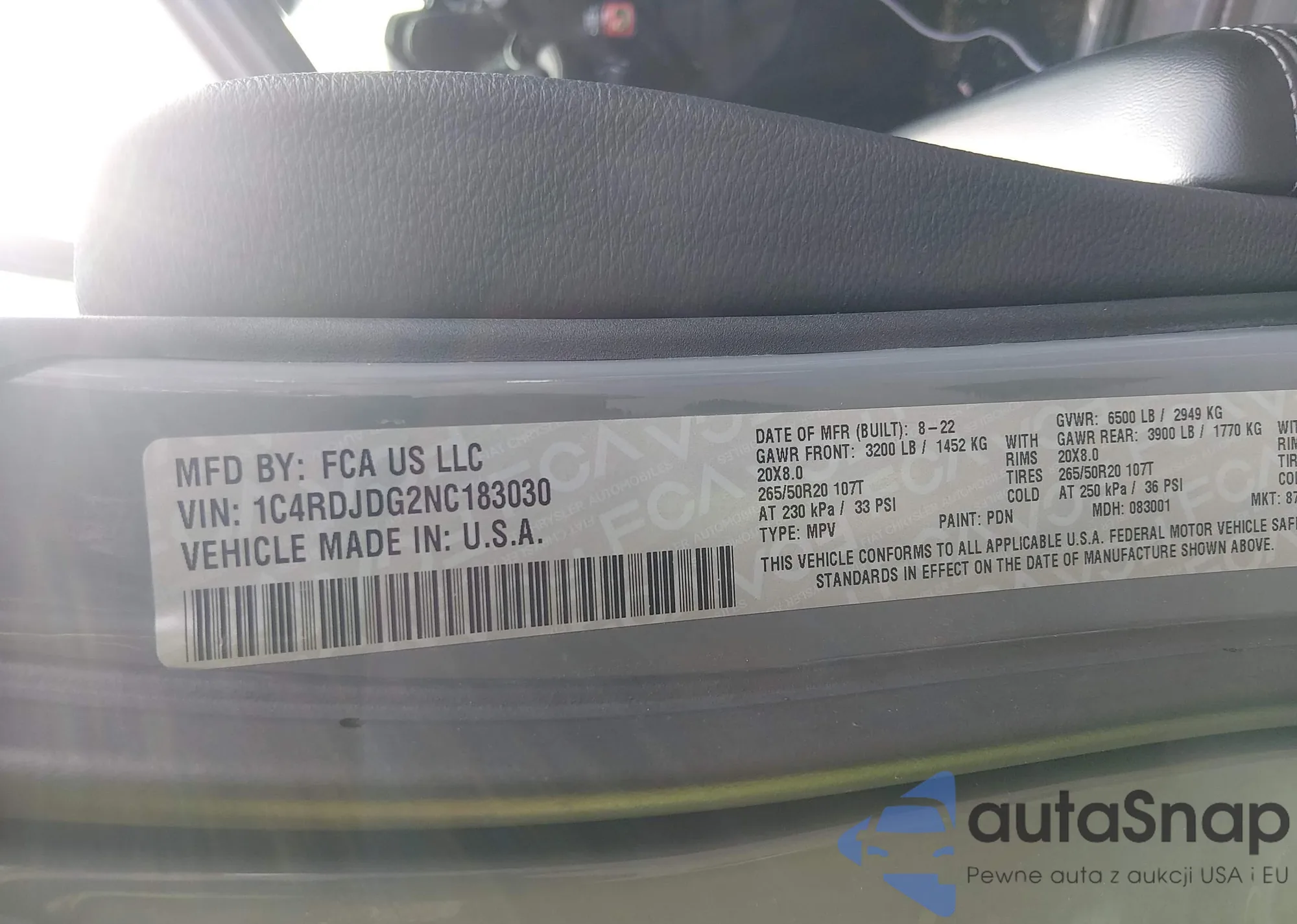 • VIN 1C4RDJDG2NC183030