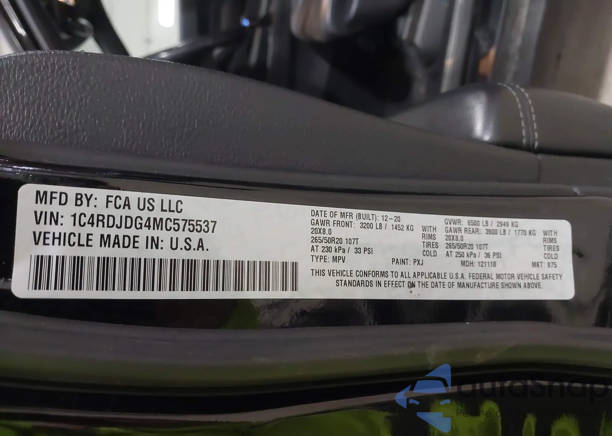 • VIN 1C4RDJDG4MC575537