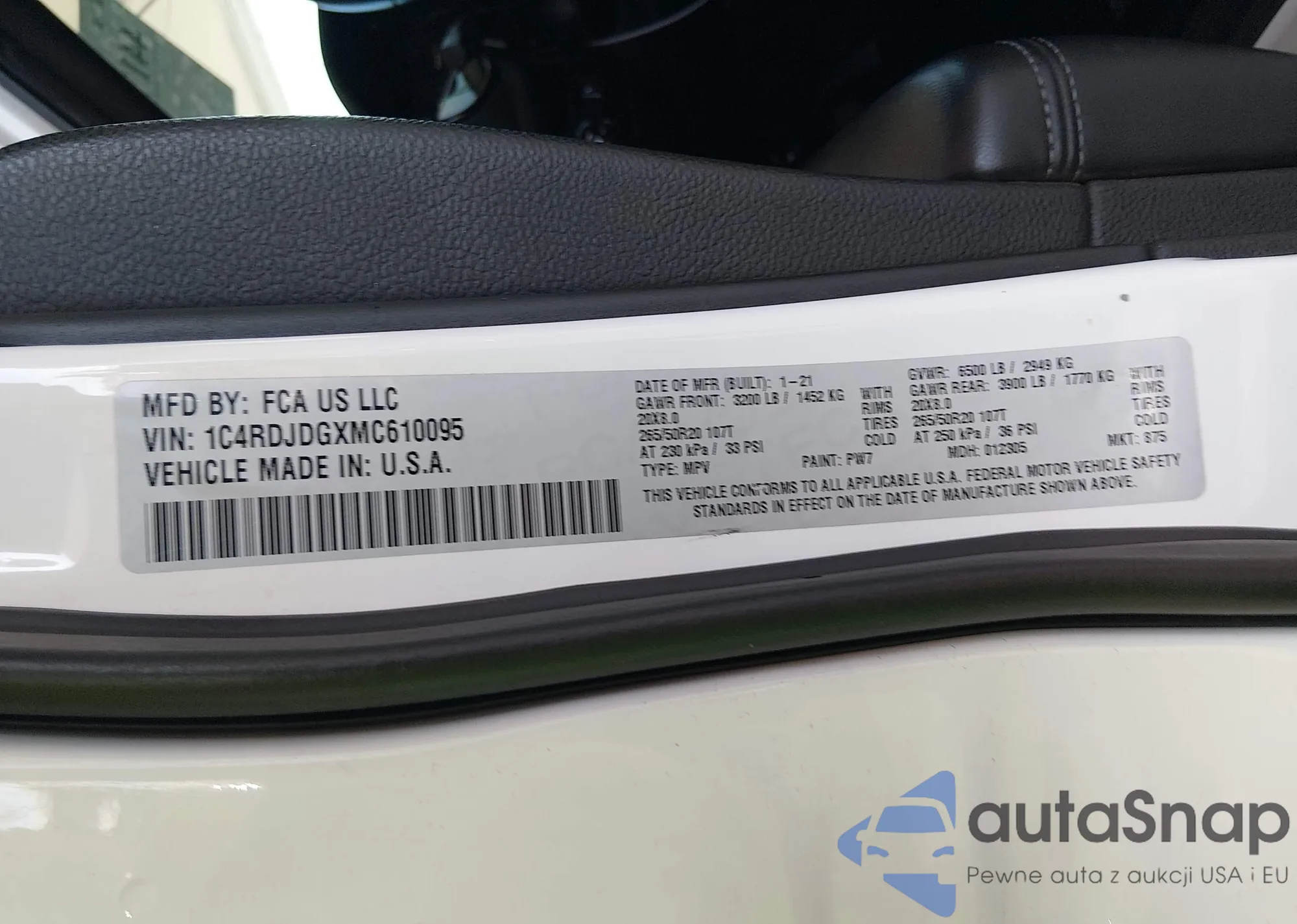 • VIN 1C4RDJDGXMC610095