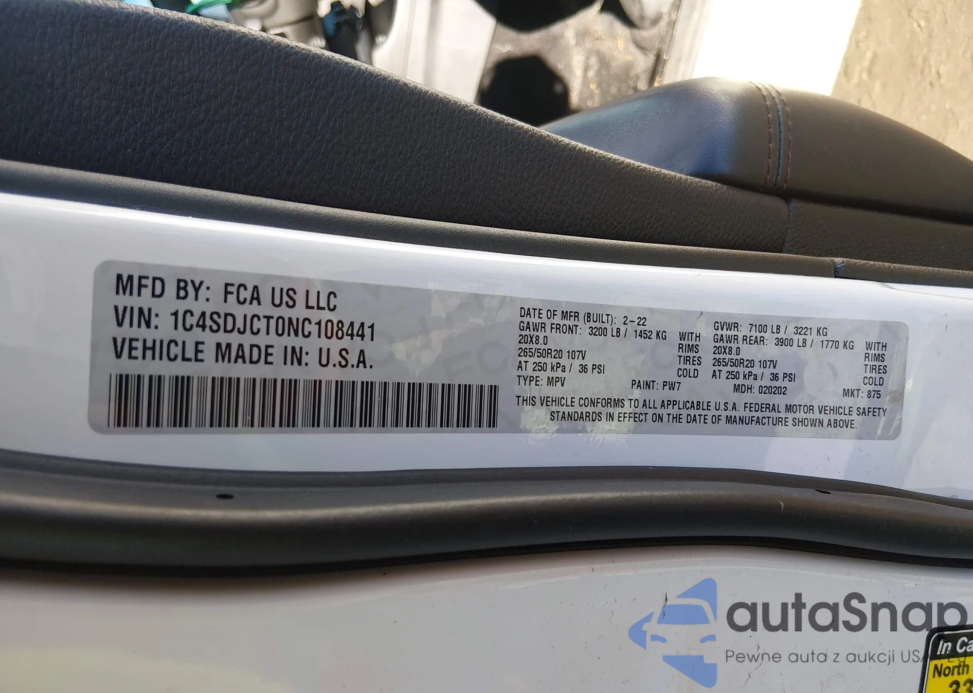 LOT: 44536248 VIN: 1C4SDJCT0NC108441