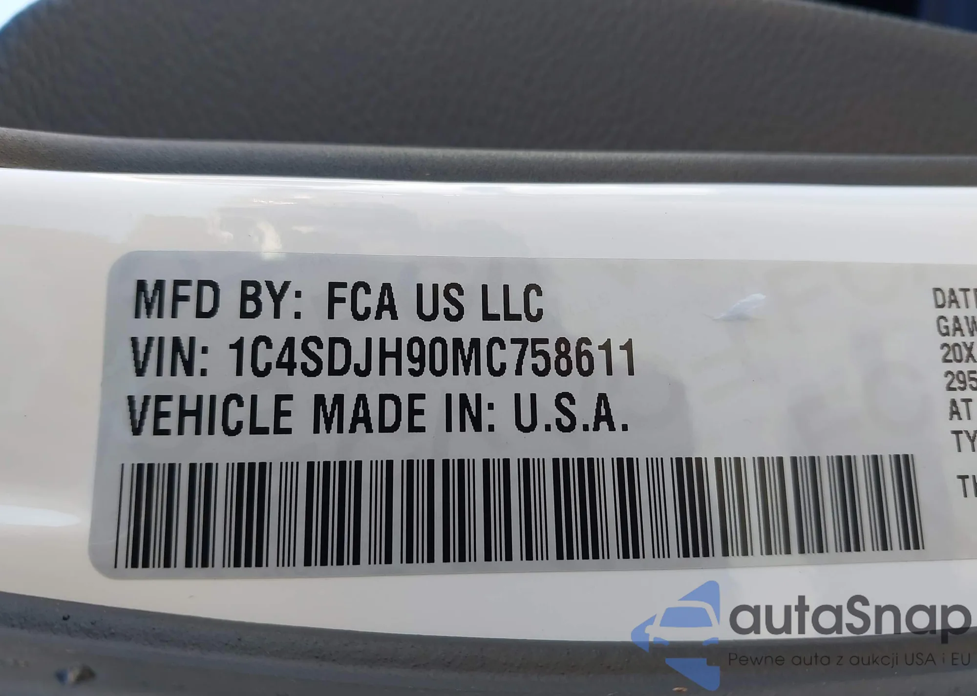 LOT: 44546220 VIN: 1C4SDJH90MC758611