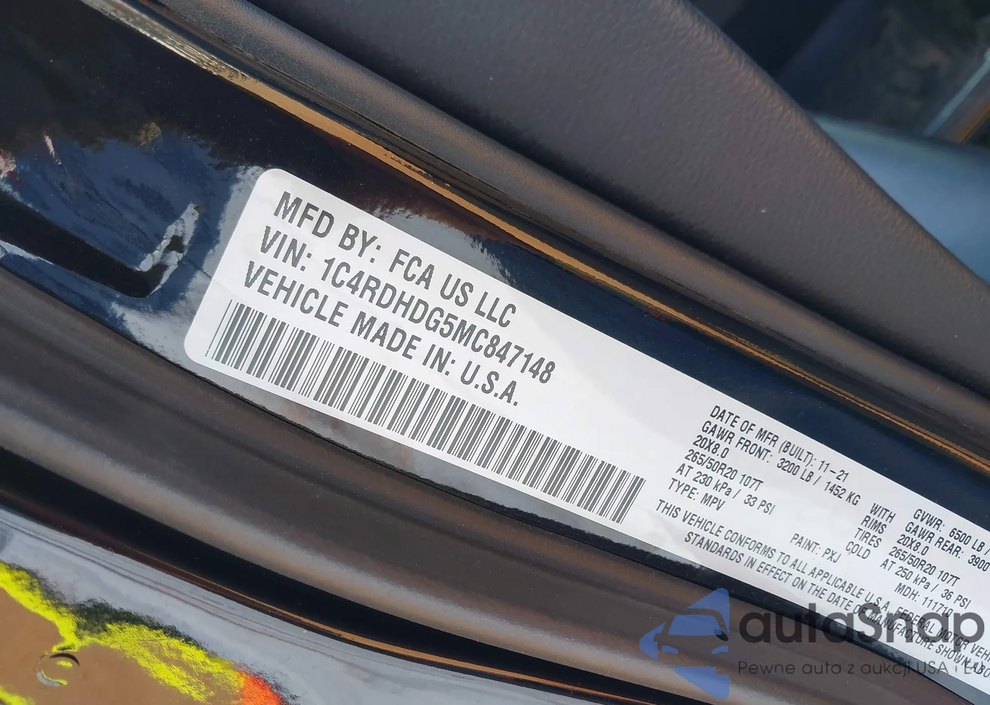 • VIN 1C4RDJAG0MC521382