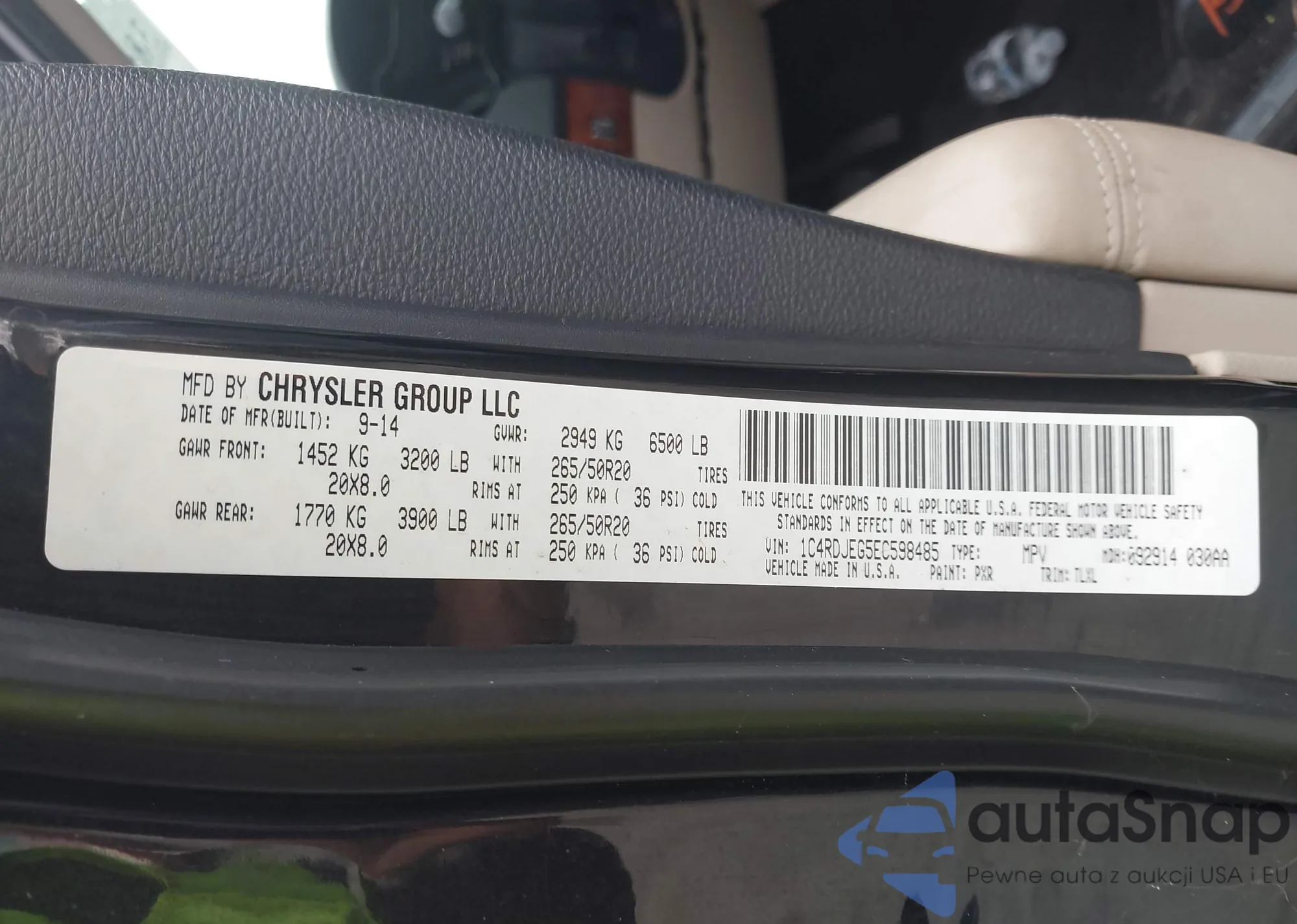 • VIN 1C4RDJEG5EC598485