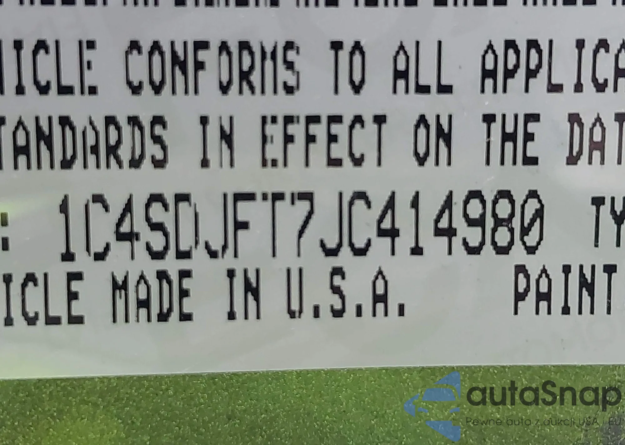 • VIN 1C4SDJFT7JC414980