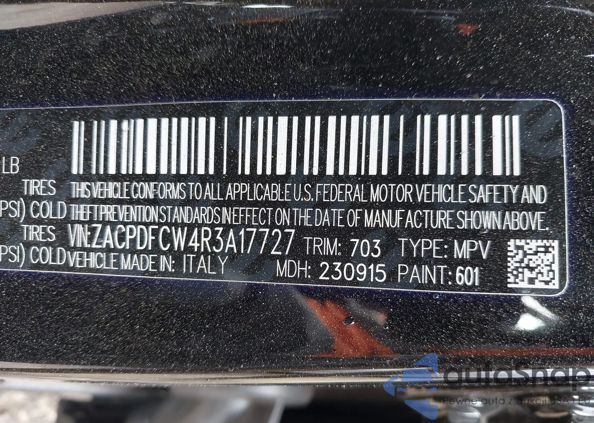 LOT: 44037447 VIN: ZACPDFCW4R3A17727