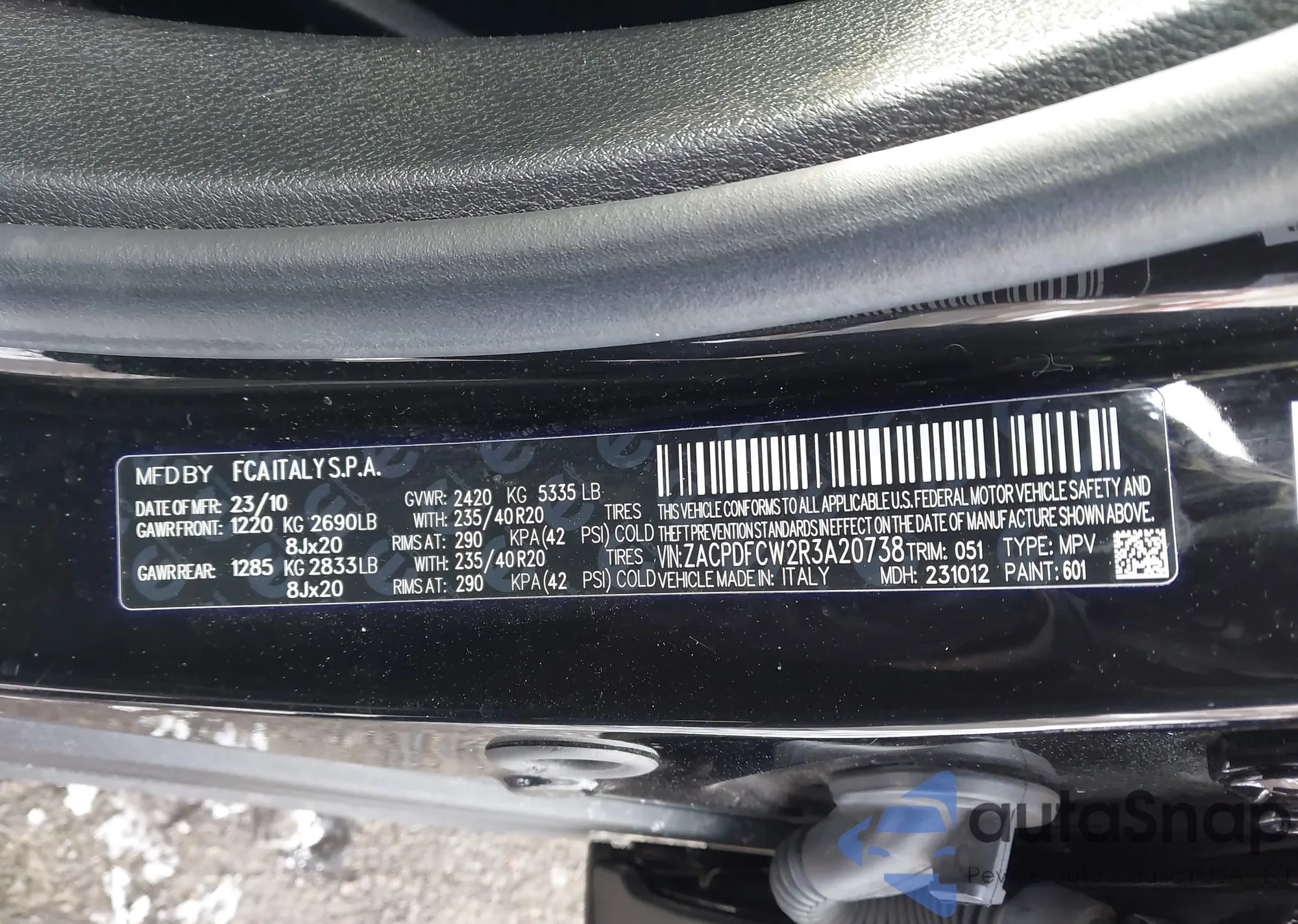 • VIN ZACPDFDW0R3A23801
