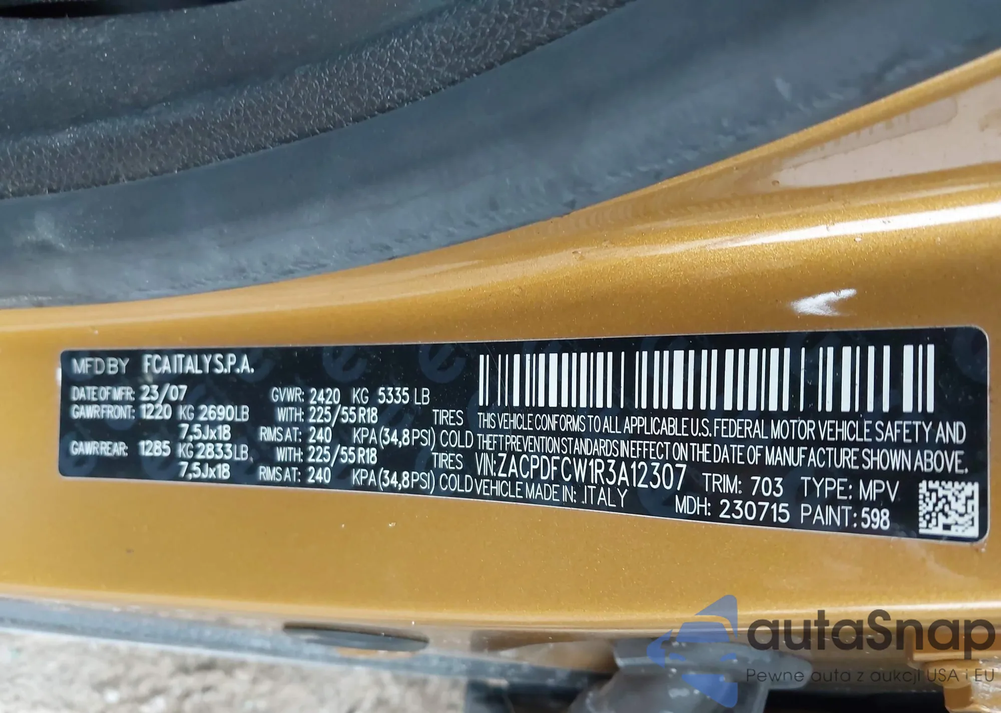 LOT: 43861091 VIN: ZACPDFCW1R3A12307