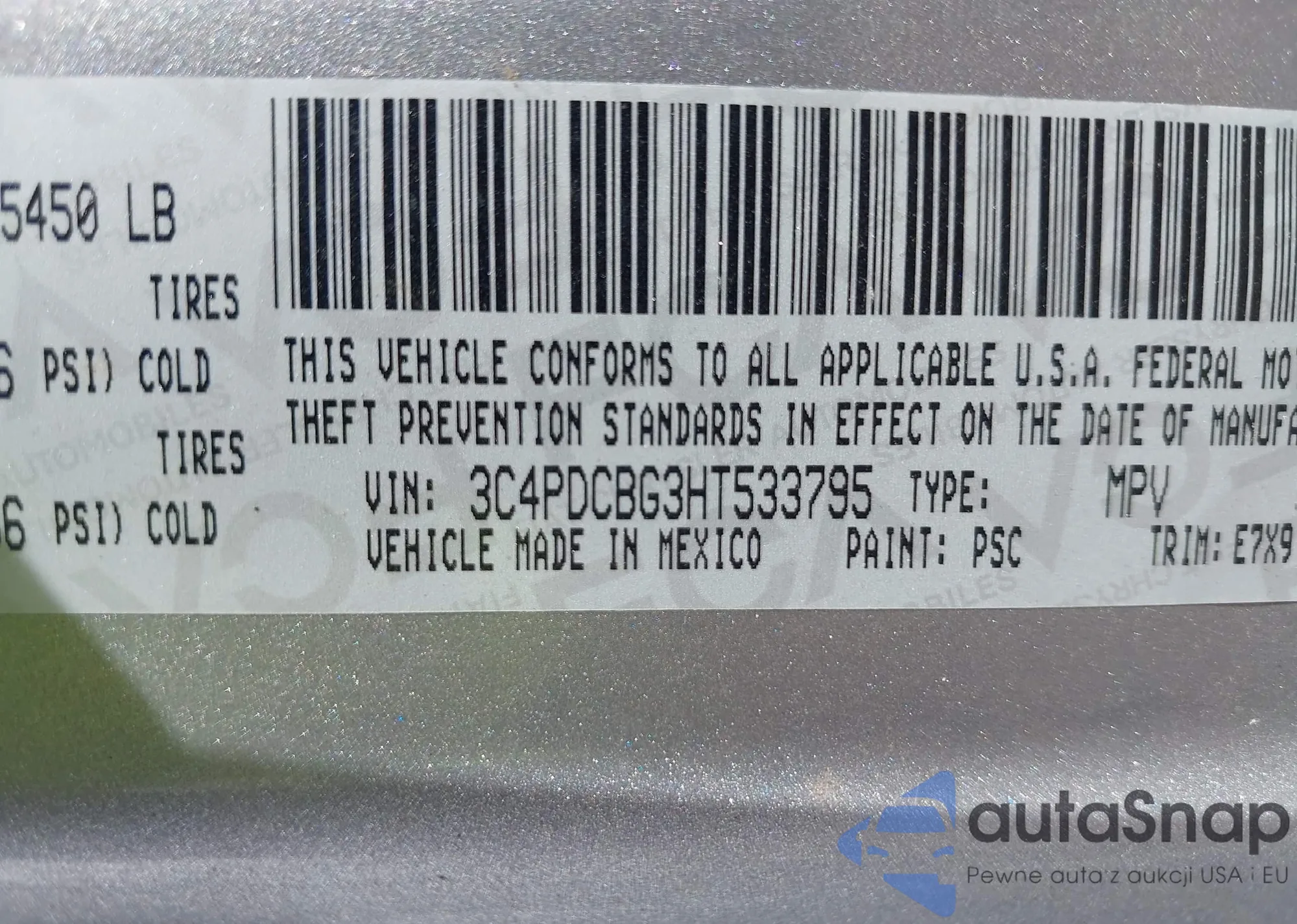 • VIN 3C4PDCBG3HT533795