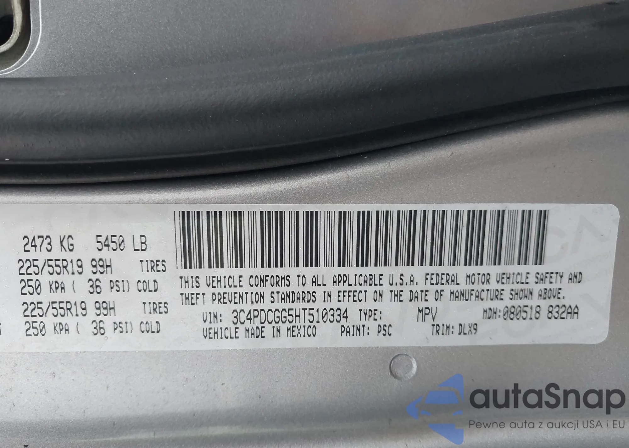 • VIN 3C4PDCGG5HT510334