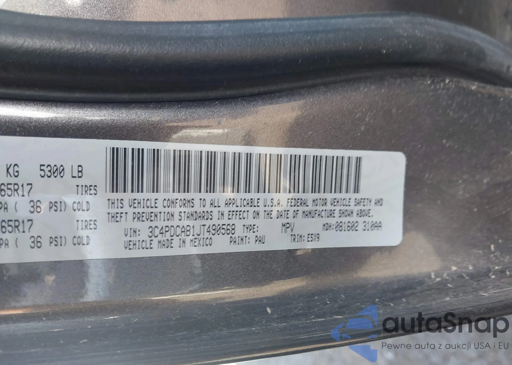 • VIN 3C4PDCAB1JT490568