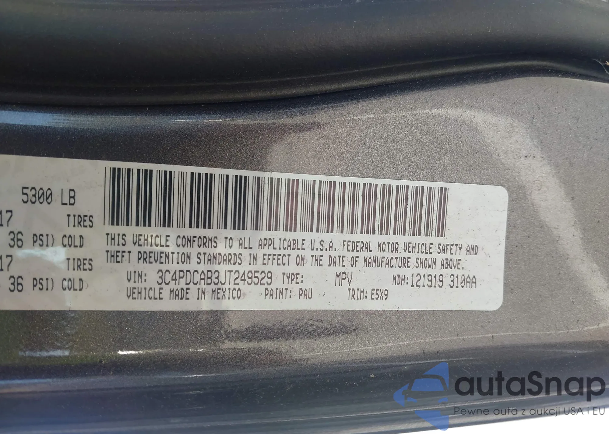 • VIN 3C4PDCAB3JT249529