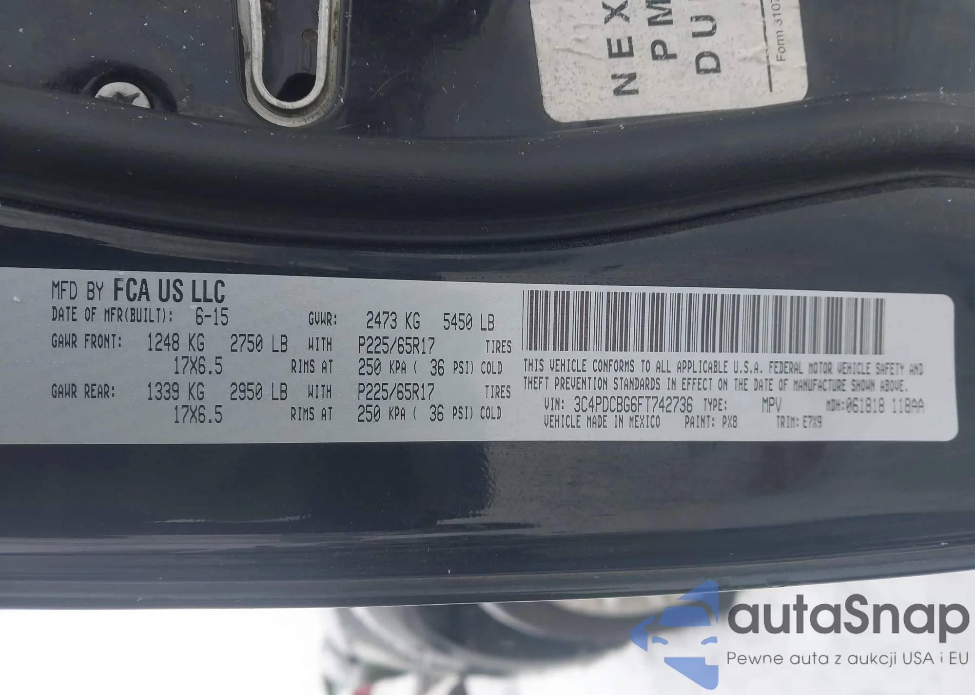 LOT: 44342339 VIN: 3C4PDCBG6FT742736